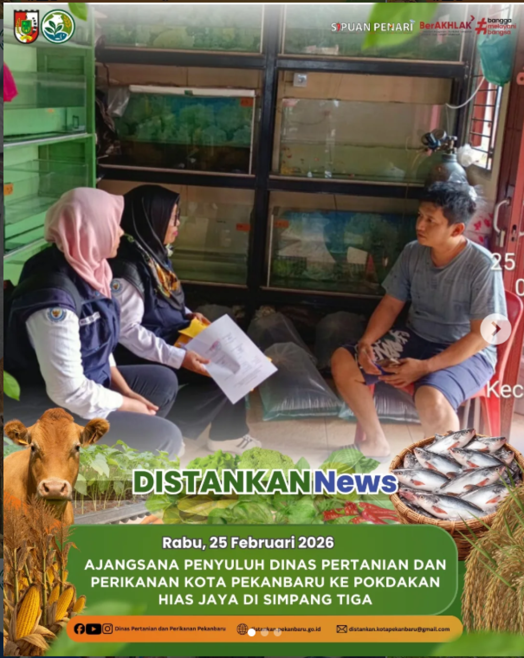 Penyuluh Dinas Pertanian dan Perikanan Kota Pekanbaru mengunjungi POKDAKAN Hias Jaya untuk memantau dan sinkronisasi data produksi ikan hias. Hasilnya? Tren produksi menunjukkan capaian positif dengan pemasaran hingga Pekanbaru, Medan, Tebing Tinggi, Duri dan Dumai.