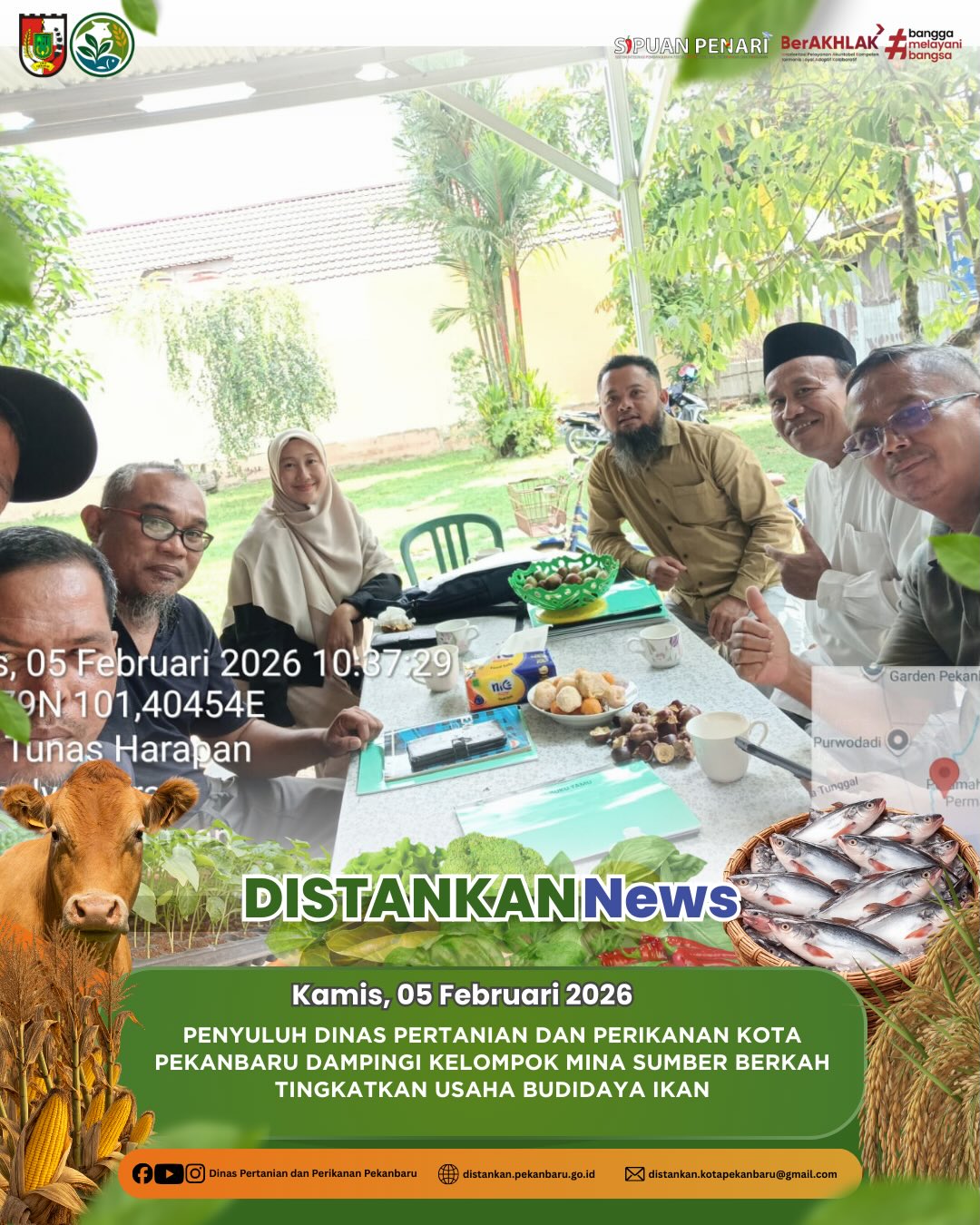 Penyuluh Dinas Pertanian dan Perikanan Kota Pekanbaru melakukan kunjungan ke Pokdakan Mina Sumber Berkah di Jl. Tunas Harapan, Kelurahan Sidomulyo Barat, Kecamatan Tuah Madani. Kunjungan ini menjadi wadah diskusi mengenai rencana usaha kelompok pasca panen Ikan Lele sebanyak 826 kg, termasuk strategi pengelolaan hasil panen dan pengembangan usaha agar lebih berkelanjutan. 🐟💼