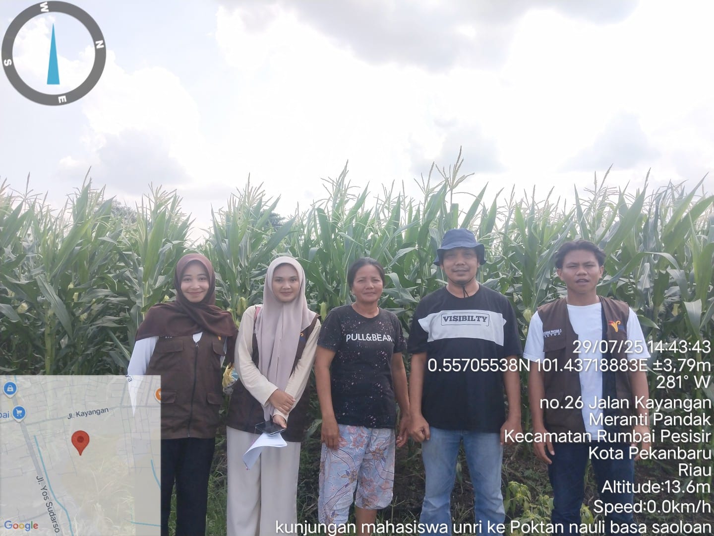 Pekanbaru, Selasa, 29 Juli 2025 - Dinas Pertanian dan Perikanan Kota Pekanbaru melalui Penyuluh Pertanian Lapangan (PPL) Kecamatan Rumbai, Bapak Uyun Lesmana, S.P., melaksanakan pendampingan terhadap mahasiswa Universitas Riau dalam kegiatan kunjungan lapangan ke Kelompok Tani Nauli Basa Saoloan, yang berlokasi di Kelurahan Meranti Pandak, Kecamatan Rumbai.