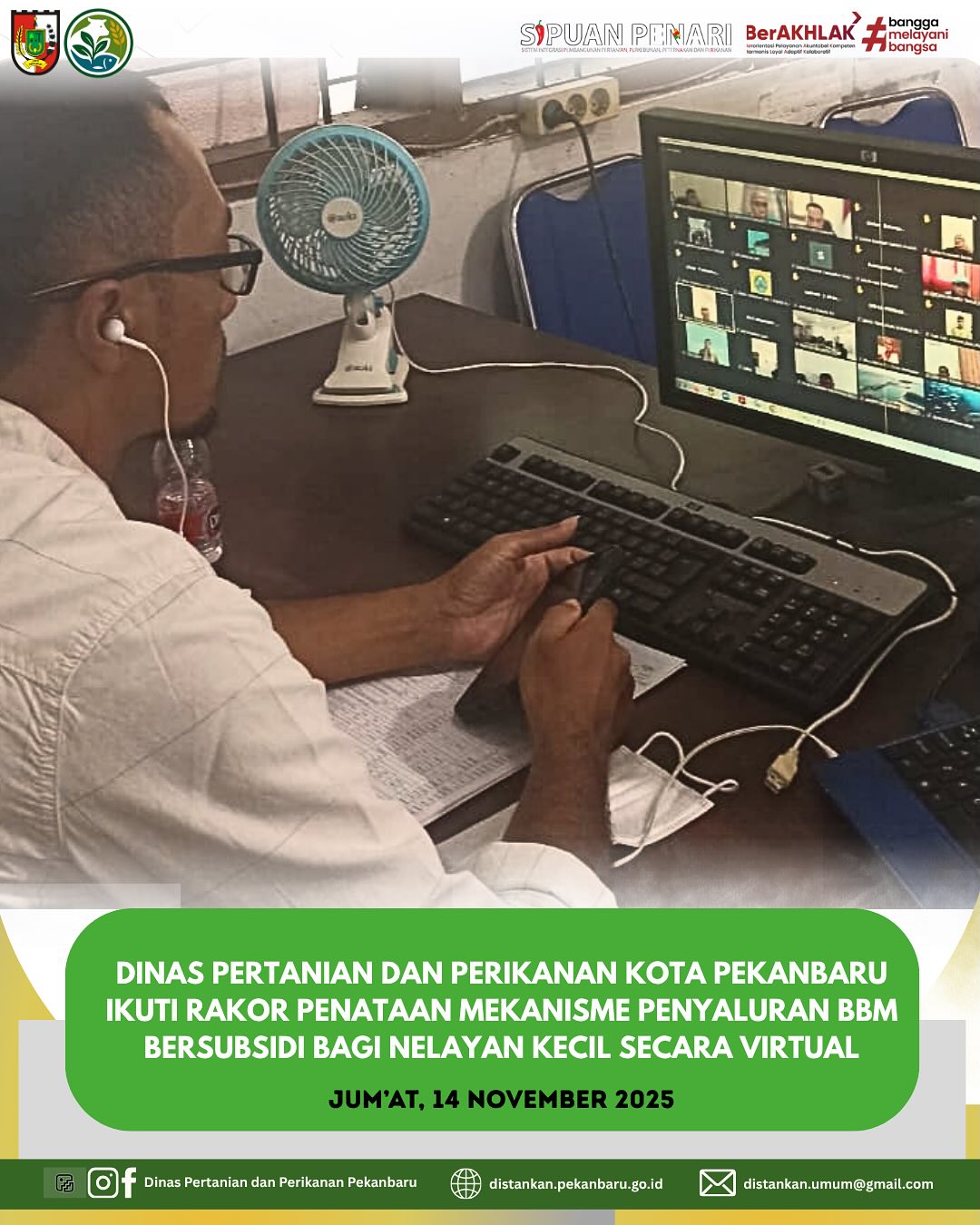 Dinas Pertanian dan Perikanan Kota Pekanbaru Ikuti Rakor Penataan Mekanisme Penyaluran BBM Bersubsidi bagi Nelayan Kecil Secara Virtual πβ½