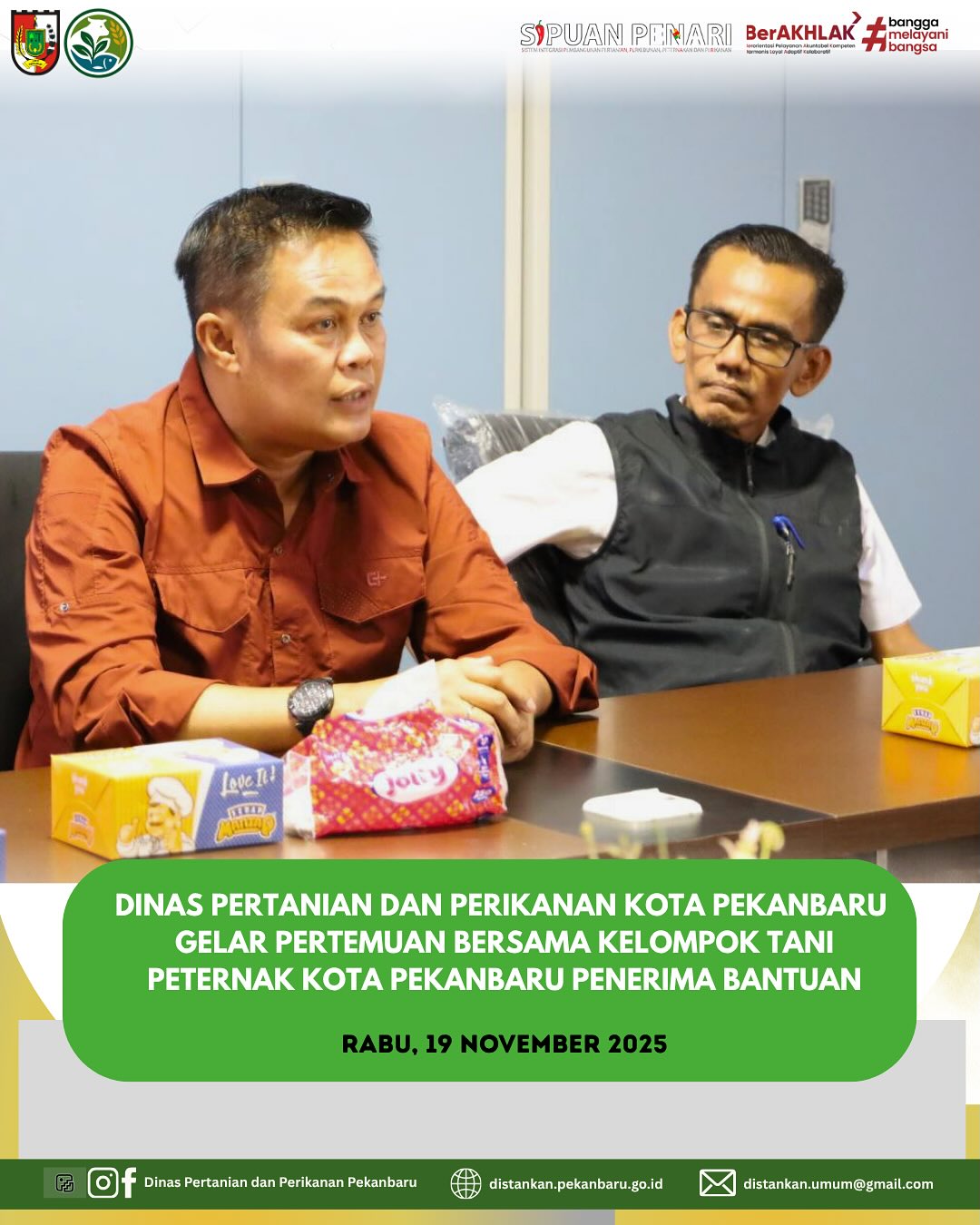 Pemerintah Kota Pekanbaru melalui Dinas Pertanian dan Perikanan terus berkomitmen mendukung pengembangan peternakan rakyat. Hari ini, Distankan mengadakan pertemuan bersama kelompok tani peternak yang menerima bantuan bibit ternak.