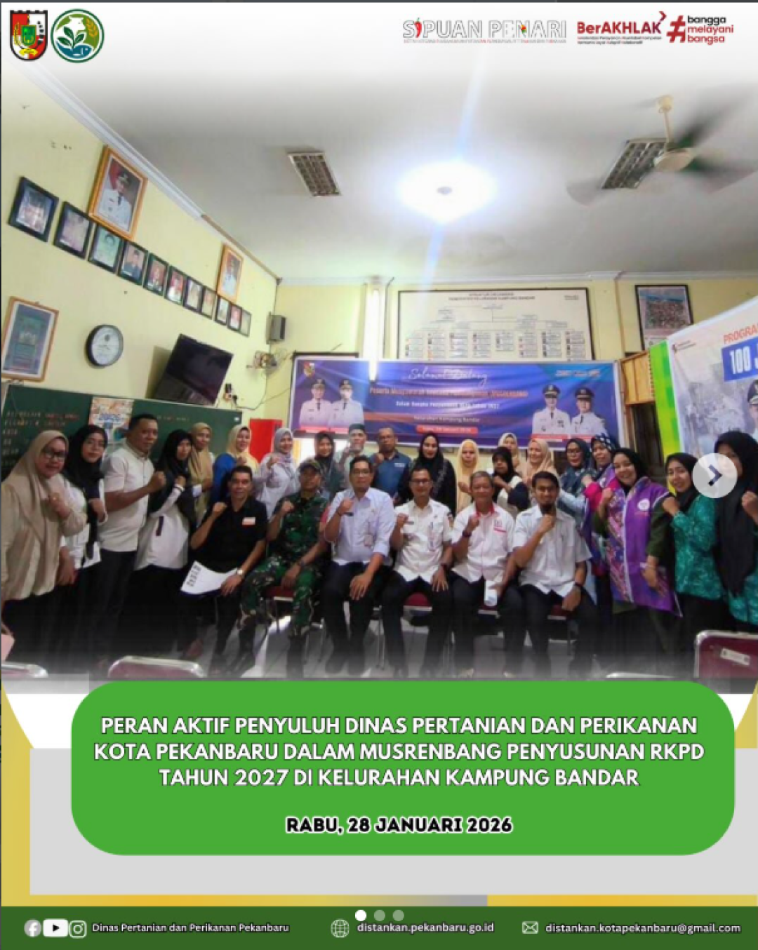 Penyuluh Dinas Pertanian dan Perikanan Kota Pekanbaru menghadiri kegiatan Musyawarah Rencana Pembangunan (Musrenbang) Penyusunan RKPD Tahun 2027 yang dilaksanakan pada Rabu, 28 Januari 2026, acara ini dibuka oleh Camat Senapelan, Bapak Wira Setiadi, S.STP., MPA.