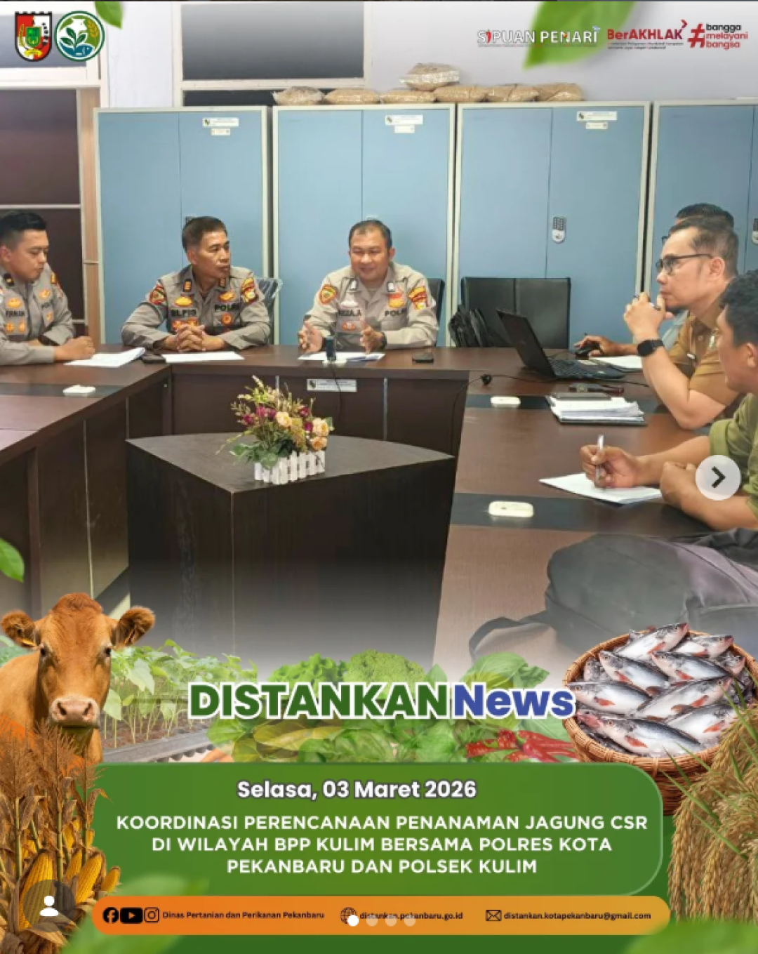 Bersama jajaran Polres Kota Pekanbaru dan Polsek Kulim, kegiatan Koordinasi Perencanaan Penanaman Jagung Program CSR di wilayah BPP Kulim berjalan dengan lancar dan penuh semangat kolaborasi.