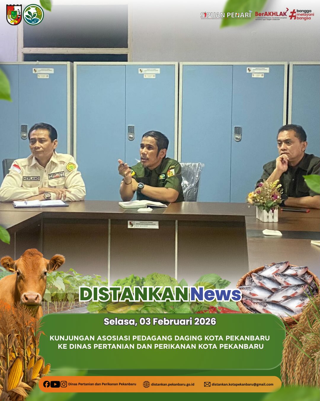 Dinas Pertanian dan Perikanan Kota Pekanbaru yang diwakili oleh Sekretaris Distankan bersama Bidang Peternakan dan Kesehatan Hewan menerima kunjungan dari Asosiasi Pedagang Daging Pekanbaru dalam rangka silaturahmi dan koordinasi menjelang bulan suci Ramadhan.