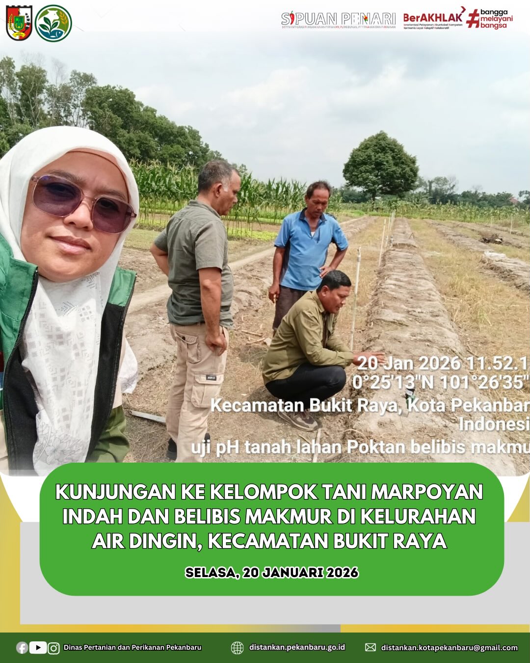 Kegiatan kunjungan lapangan bersama Kelompok Tani Marpoyan Indah dan Kelompok Tani Belibis Makmur dilaksanakan sebagai upaya meningkatkan pemahaman petani serta memperkuat sinergi dalam mendukung keberlanjutan sektor pertanian.