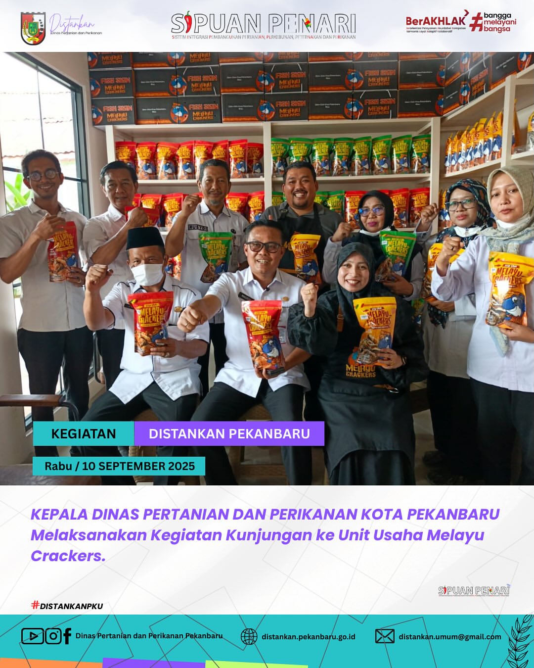 Hari Rabu 10 September 2025, Kepala Dinas Pertanian dan Perikanan Kota Pekanbaru H.Maisisco, S.Sos., M.Si berkesempatan meninjau langsung Melayu Crackers, salah satu unit usaha olahan kreatif khas daerah.