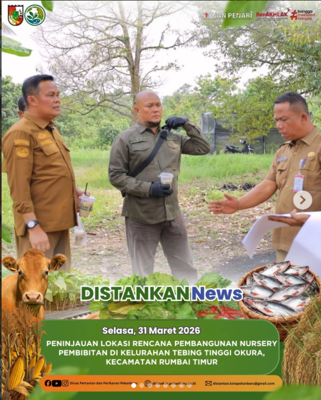 Kepala Dinas Pertanian dan Perikanan Kota Pekanbaru turun langsung meninjau lokasi rencana pembangunan nursery pembibitan di Kelurahan Tebing Tinggi Okura, Kecamatan Rumbai Timur.