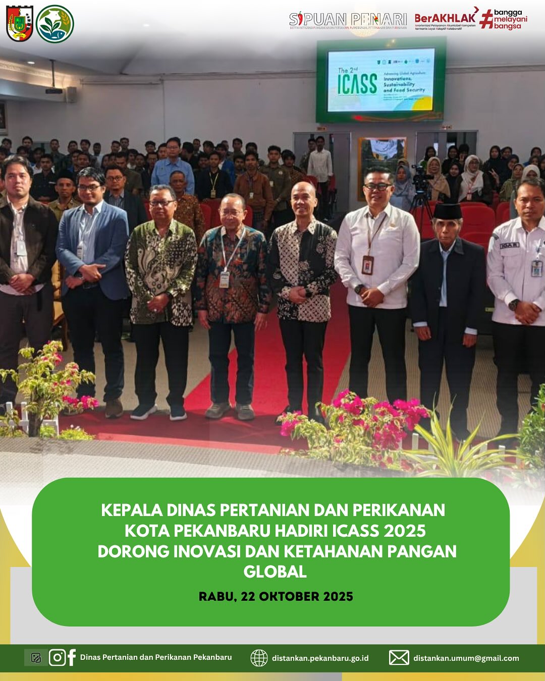 Kepala Dinas Pertanian dan Perikanan Kota Pekanbaru turut menghadiri The 2nd International Conference on Agricultural Strategy for Sustainability (ICASS) yang mengusung tema “Advancing Global Agriculture: Innovation, Sustainability, and Food Security”, bertempat di Auditorium H. Rawi Kunin, Universitas Islam Riau, Kota Pekanbaru.