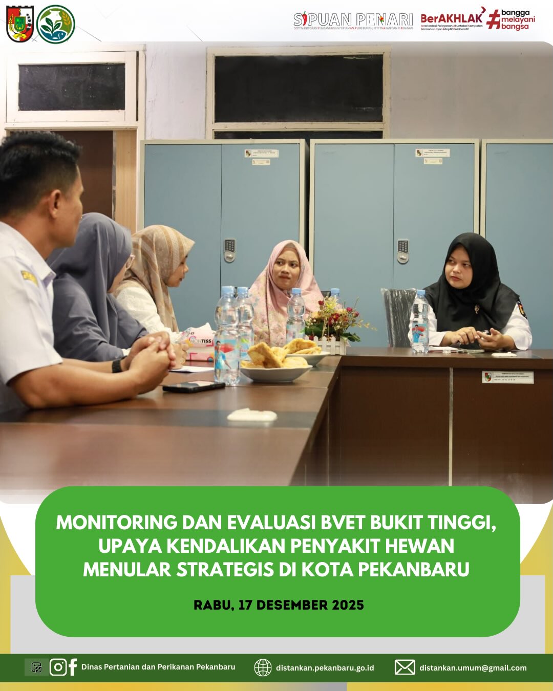 Dinas Pertanian dan Perikanan Kota Pekanbaru melaksanakan monitoring dan evaluasi Bvet Bukit Tinggi, membahas kejadian PHMS (Penyakit Hewan Menular Strategis) di wilayah Pekanbaru, termasuk rabies, PMK, LSD, Brucellosis, dan SE.