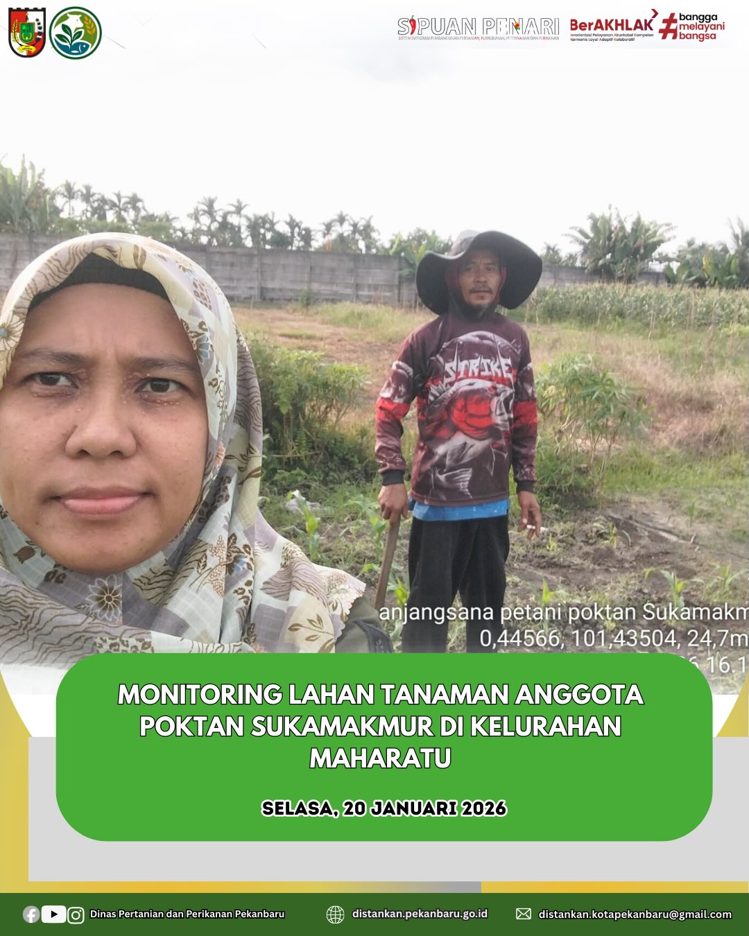 Penyuluh pertanian melakukan monitoring lahan anggota Poktan Sukamakmur di Kelurahan Maharatu. Hasil pemantauan menunjukkan adanya konversi lahan seluas 0,25 ha dari tanaman sayuran daun menjadi lahan jagung.