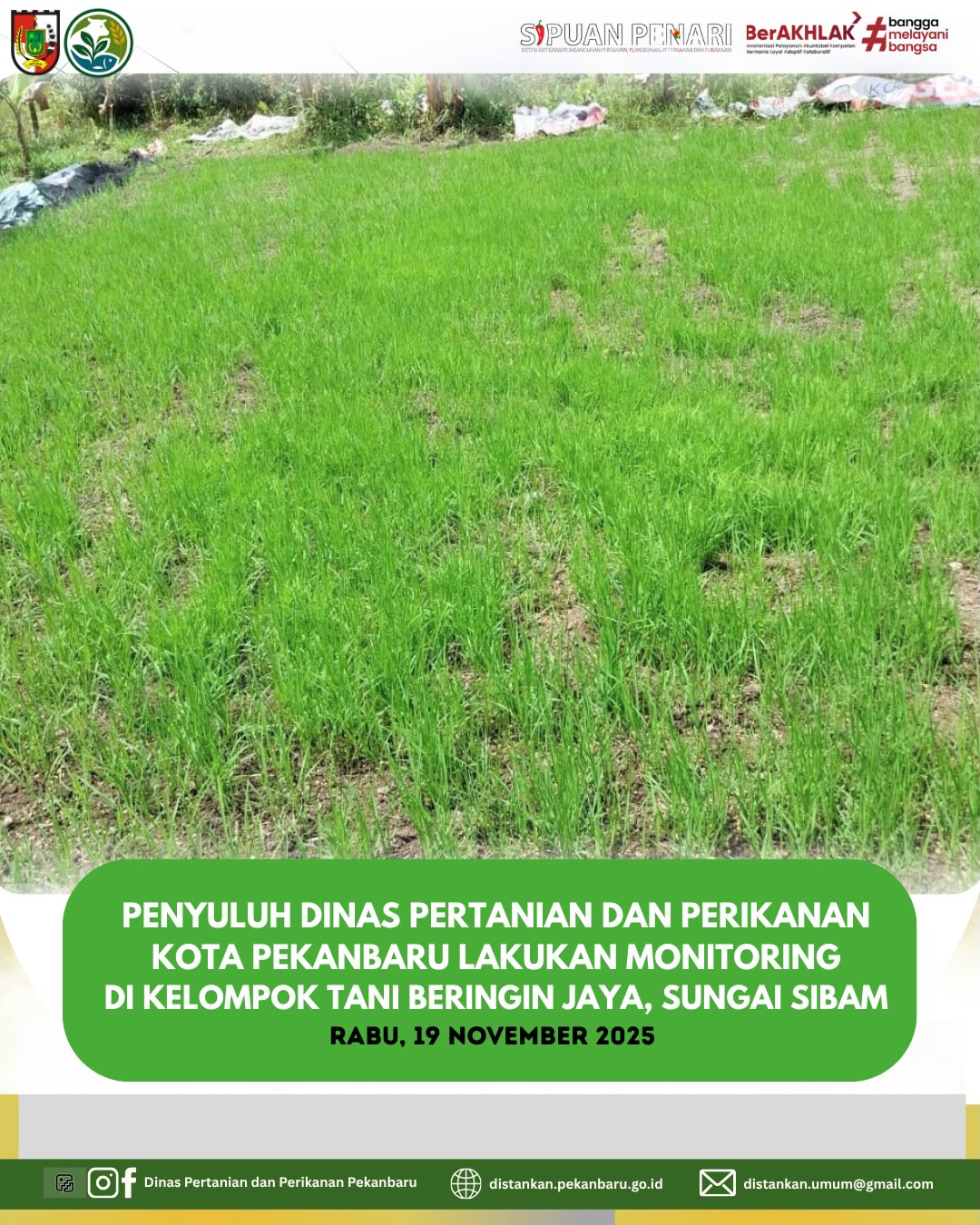 Tim penyuluh Distankan Pekanbaru melakukan monitoring di Kelompok Tani Beringin Jaya, menyambut musim tanam padi yang direncanakan pada minggu pertama Desember 2025. Berikut hasil pemantauan: