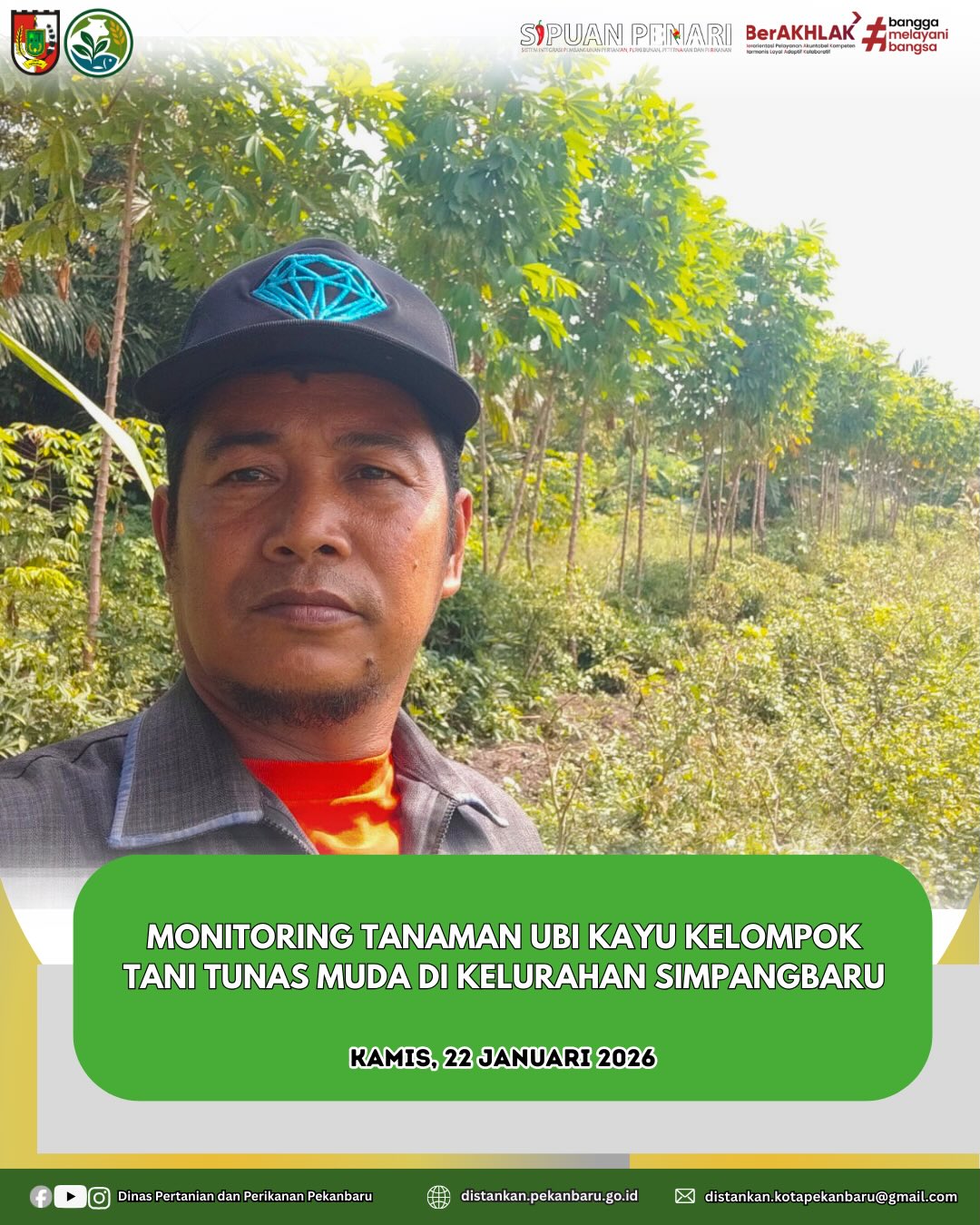 Penyuluh Pertanian Lapangan (PPL) melakukan monitoring tanaman ubi kayu untuk memastikan produksi pangan di wilayah Kel. Simpangbaru mencukupi target yang telah ditetapkan tahun 2026. 🌿