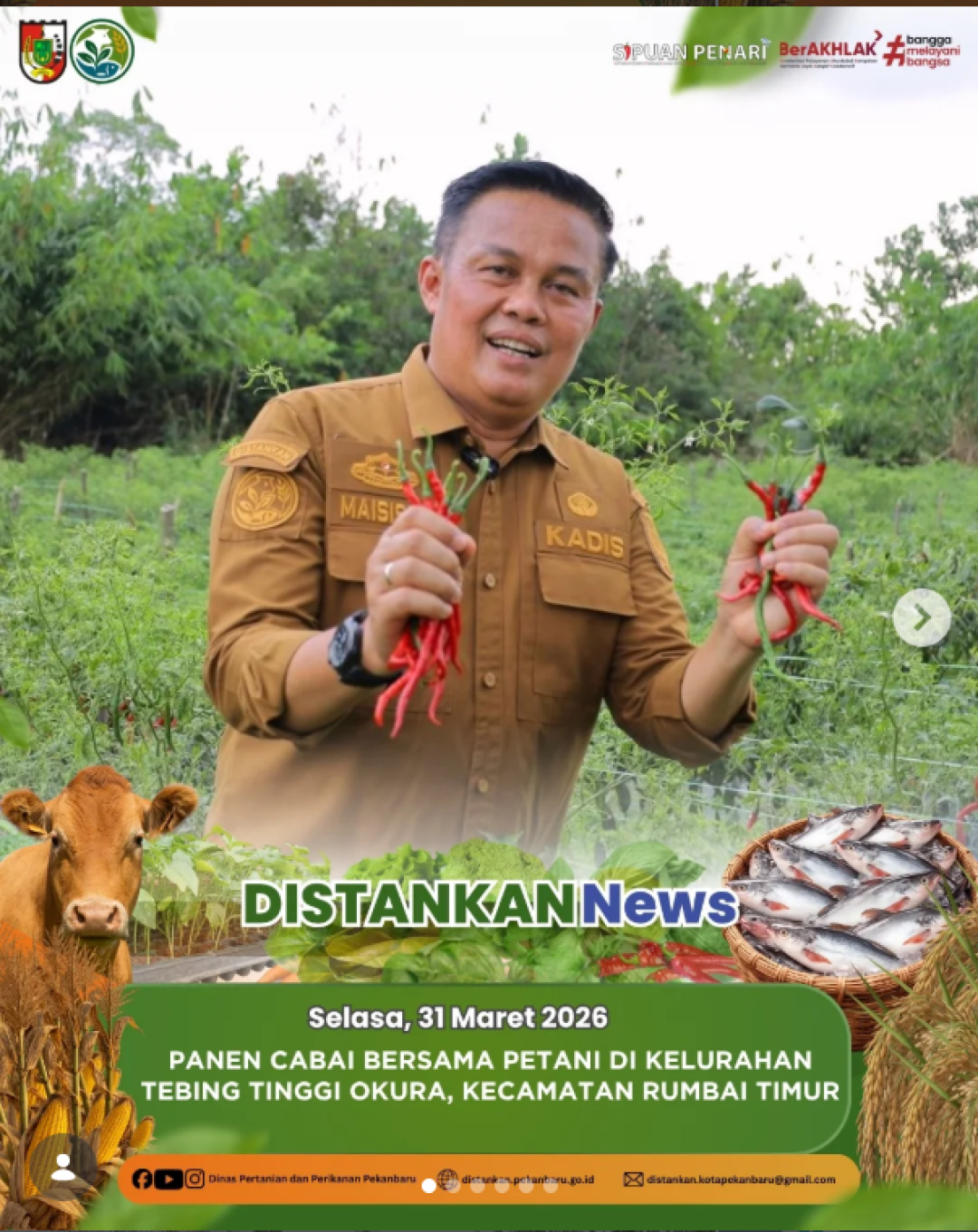 Kepala Dinas Pertanian dan Perikanan Kota Pekanbaru turun langsung melaksanakan panen cabai bersama petani di Kelurahan Tebing Tinggi Okura, Kecamatan Rumbai Timur.