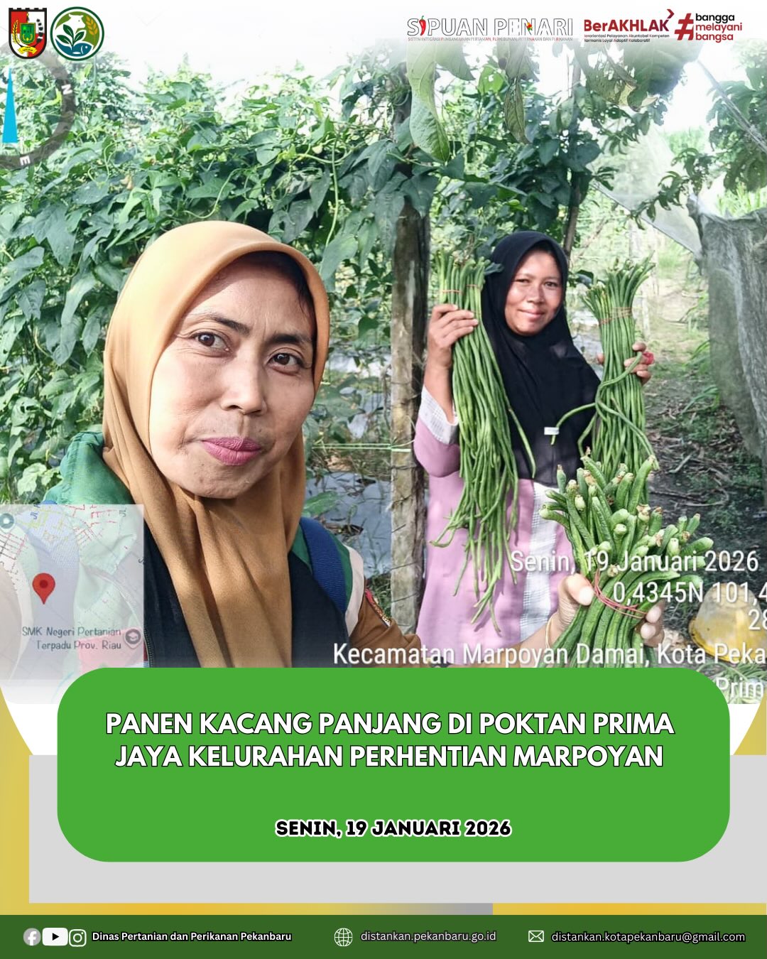 Poktan Prima Jaya di Kelurahan Perhentian Marpoyan melaksanakan panen kacang panjang dengan hasil sebanyak 250 ikat.