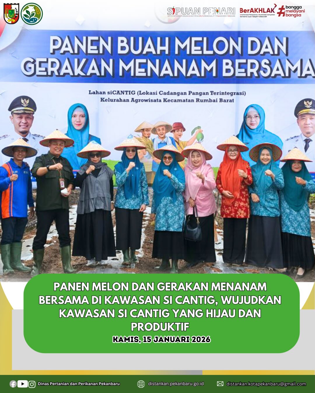 Hari ini dilaksanakan kegiatan Panen Melon sekaligus Gerakan Menanam Bersama di Kawasan Si Cantig (Sistem Cadangan Pangan Terintegrasi) sebagai upaya memperkuat ketahanan pangan berkelanjutan di Kota Pekanbaru.