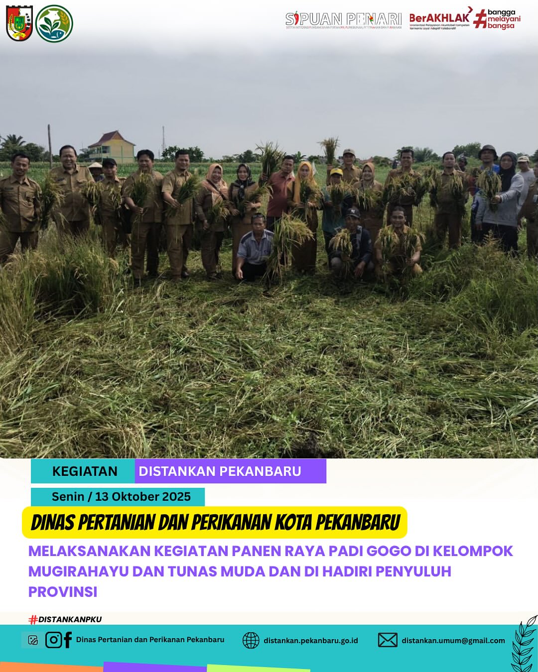 Panen padi Gogo seluas hampir 2 hektar telah sukses dilaksanakan oleh Kelompok Tani Mugirahayu dan Tunas Muda, Kelurahan Sidomulyo Barat.