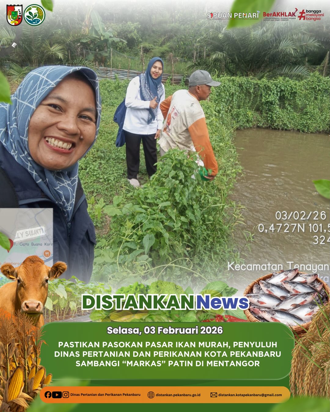 Penyuluh Dinas Pertanian dan Perikanan Kota Pekanbaru melakukan kunjungan ke kolam budidaya milik Pak Riana di Kelurahan Mentangor. Kunjungan ini merupakan langkah penting menyiapkan stok Pasar Ikan Segar Murah, program inisiasi Pj Gubernur Riau, Bapak Ir. H. S.F. Hariyanto, M.T.