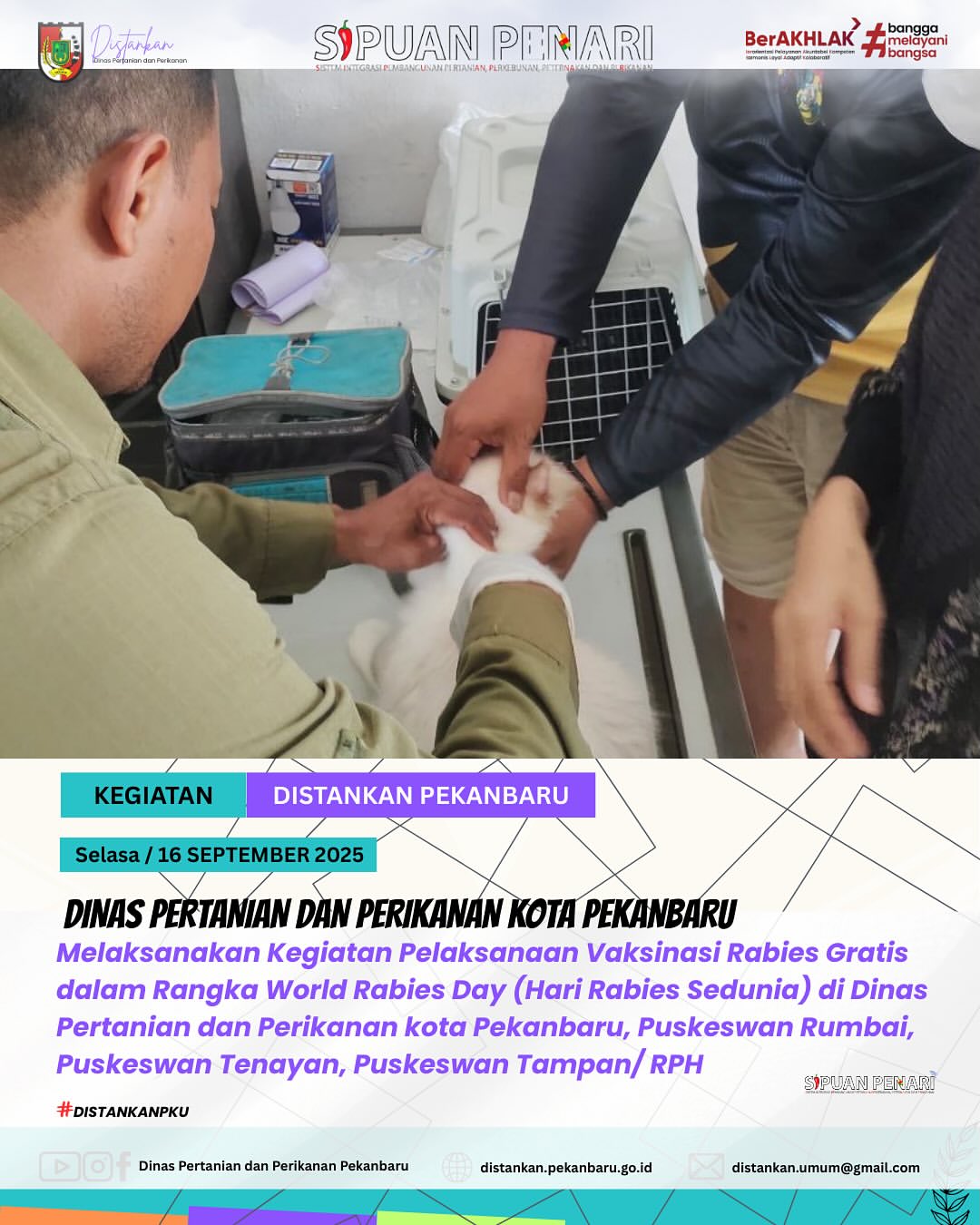#WorldRabiesDay2025 #PekanbaruBebasRabies #VaksinasiRabies #PuskeswanPekanbaru #SayangiHewanmu #StopRabies