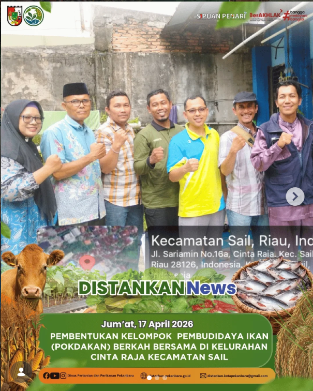 Penyuluh Perikanan telah melaksanakan kegiatan pembentukan Kelompok Pembudidaya Ikan (POKDAKAN) *Berkah Bersama* di Kelurahan Cinta Raja, Kecamatan Sail pada Jumat, 17 April 2026.