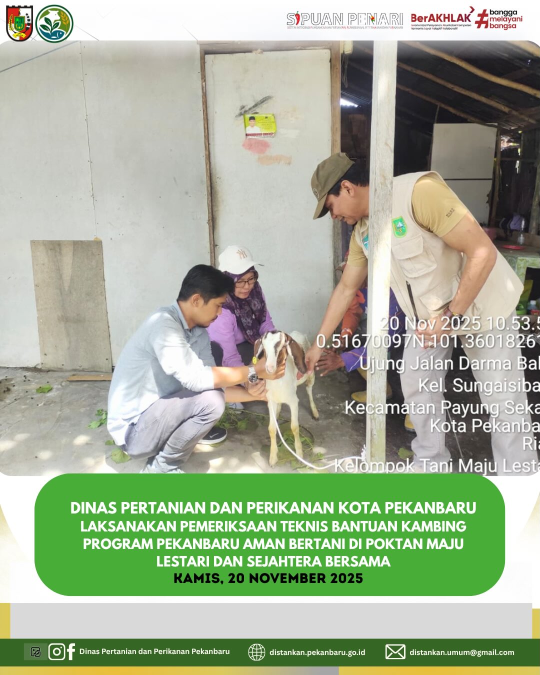 Hari ini dilakukan pemeriksaan teknis pada kegiatan Bantuan Kambing Pekanbaru Aman Bertani di dua kelompok tani:
