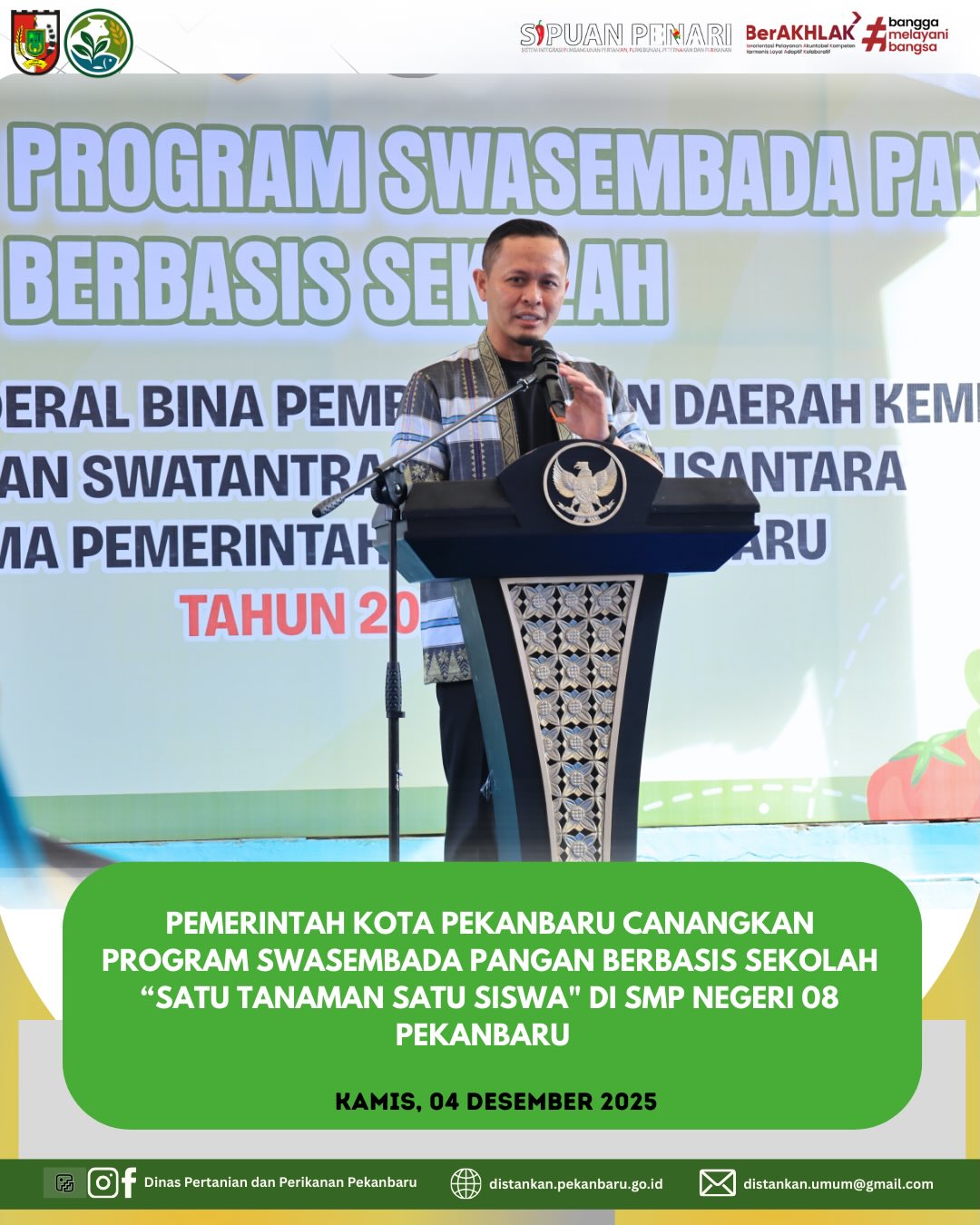 🌱 Pemerintah Kota Pekanbaru Canangkan Program Swasembada Pangan Berbasis Sekolah “Satu Tanaman Satu Siswa” di SMPN 8 Pekanbaru 🌱