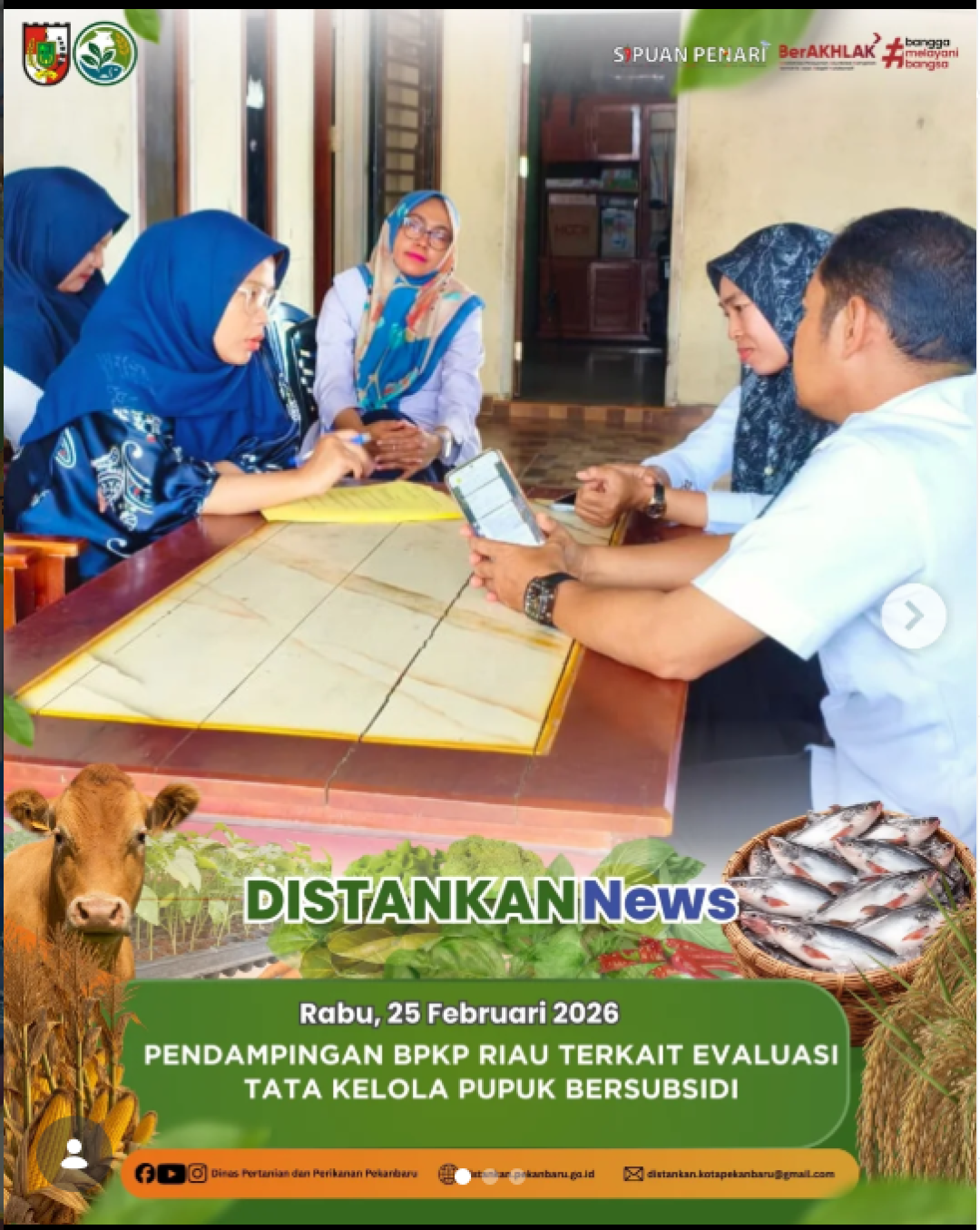 Dinas Pertanian dan Perikanan Kota Pekanbaru mendampingi Badan Pengawasan Keuangan dan Pembangunan Perwakilan Riau dalam rangka evaluasi tata kelola pupuk bersubsidi.