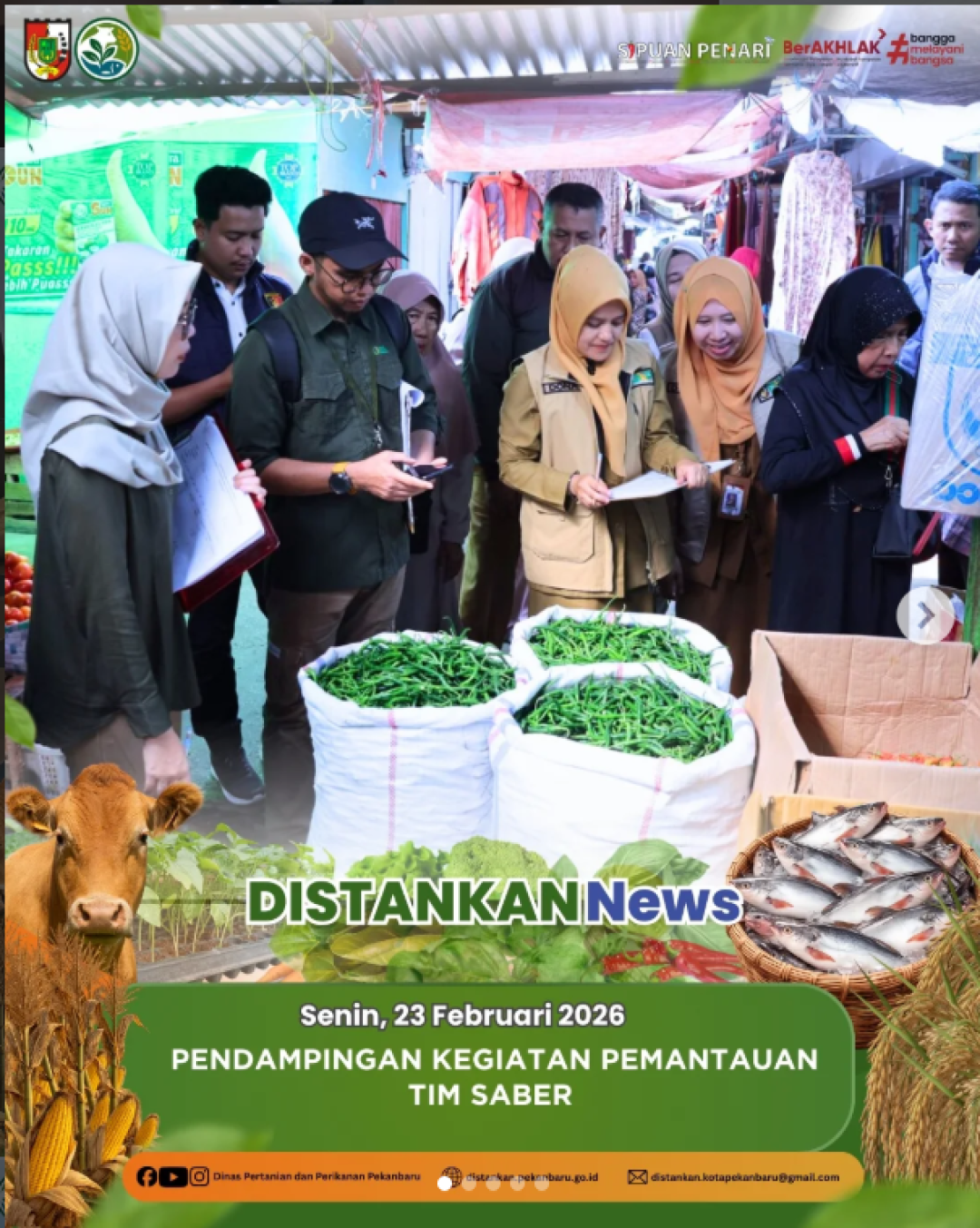 Pemantauan harga kebutuhan pokok terus dilakukan guna menjaga stabilitas pasokan dan harga di Kota Pekanbaru. Tim melaksanakan monitoring di Pasar Agus Salim dan Pasar Cik Puan.