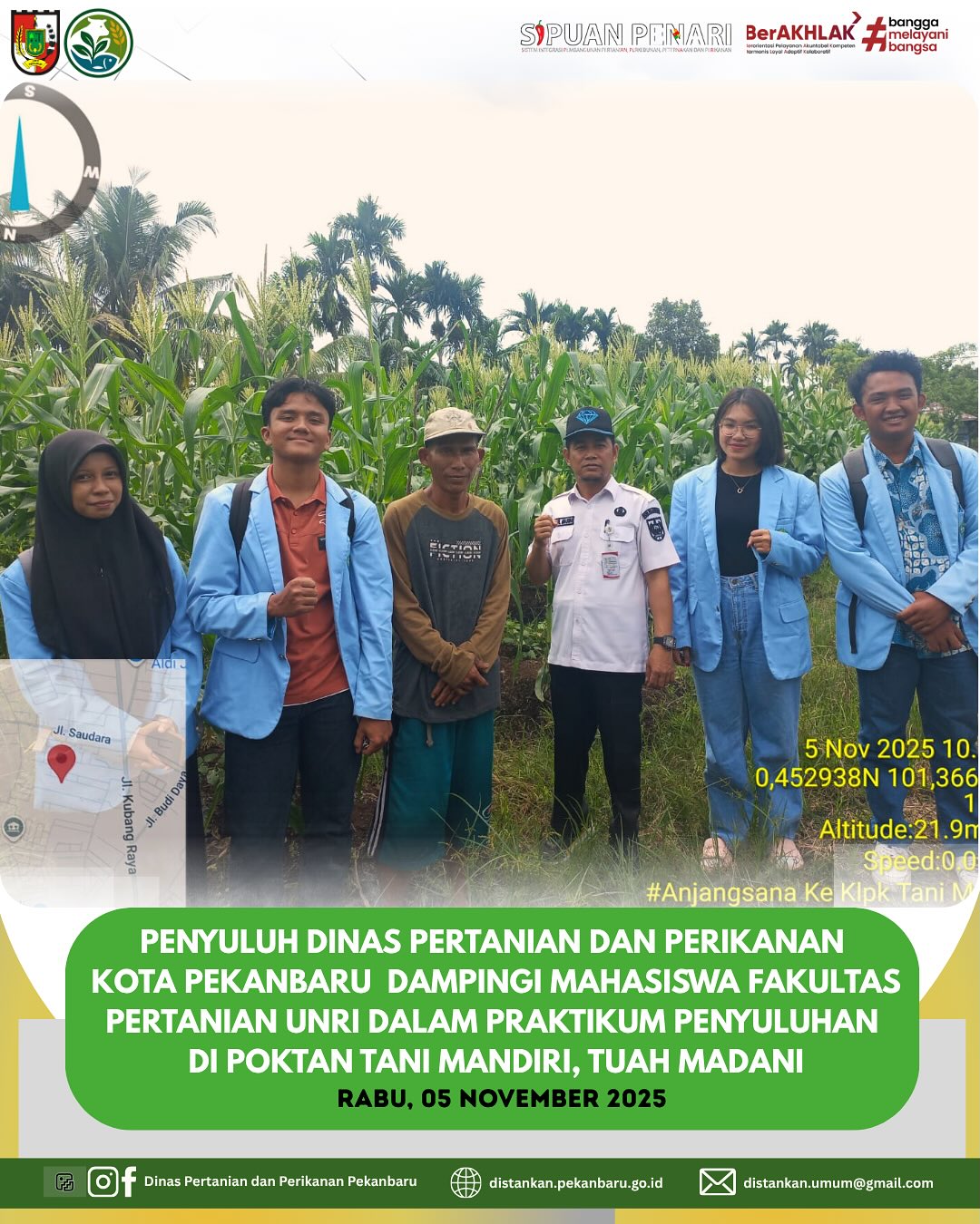 Penyuluh Dinas Pertanian dan Perikanan Kota Pekanbaru mendampingi mahasiswa/i Fakultas Pertanian Universitas Riau (UNRI) dalam rangka praktikum mata kuliah Penyuluhan Pertanian di Poktan Tani Mandiri, Jl. Yuda Karya Ujung, Kelurahan Tuah Madani. ๐ฑ