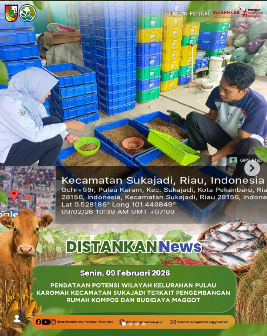 Telah dilaksanakan kegiatan Pendataan Potensi Wilayah di Kelurahan Pulau Karomah, Kecamatan Sukajadi, yang berfokus pada pengelolaan sampah organik melalui Rumah Kompos dan budidaya maggot sebagai upaya pengembangan sektor pertanian dan perikanan lokal.