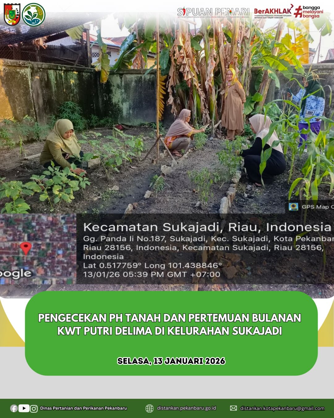 Penyuluh Pertanian Kecamatan Sukajadi bersama Penyuluh Perikanan melaksanakan kegiatan penyuluhan sekaligus pengecekan pH tanah di Kelompok Wanita Tani (KWT) Putri Delima, Kelurahan Sukajadi, Kecamatan Sukajadi pada π