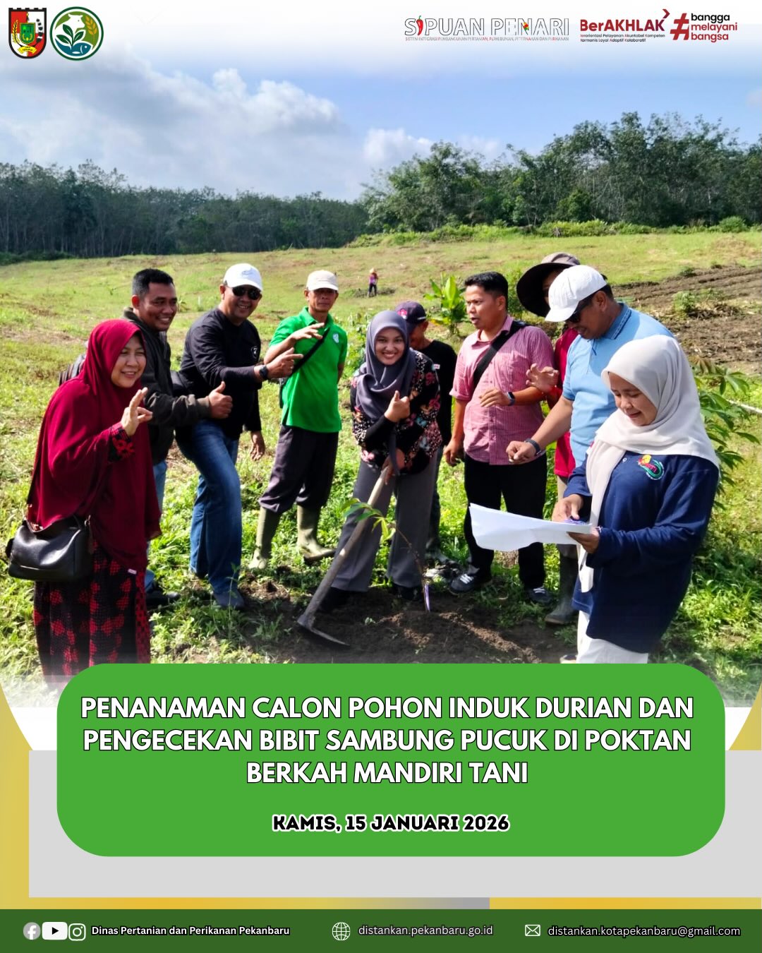 Poktan Berkah Mandiri Tani melaksanakan kegiatan penanaman 40 batang calon pohon induk durian varietas Duri Hitam sebagai upaya pengembangan durian unggulan lokal.