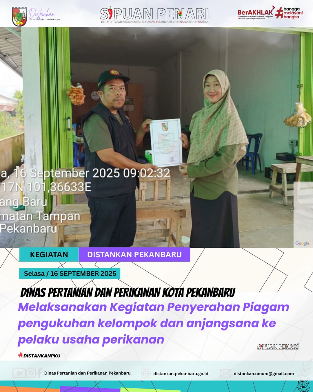 Sebagai tindak lanjut dari penilaian kelas kemampuan, Kelompok POKDAKAN Air Putih Mandiri kini resmi dikukuhkan sebagai kelompok pembudidaya tingkat pemula melalui penyerahan Piagam Pengukuhan yang ditandatangani langsung oleh Lurah Air Putih, Bapak Zubir Yahya, S.Pd.