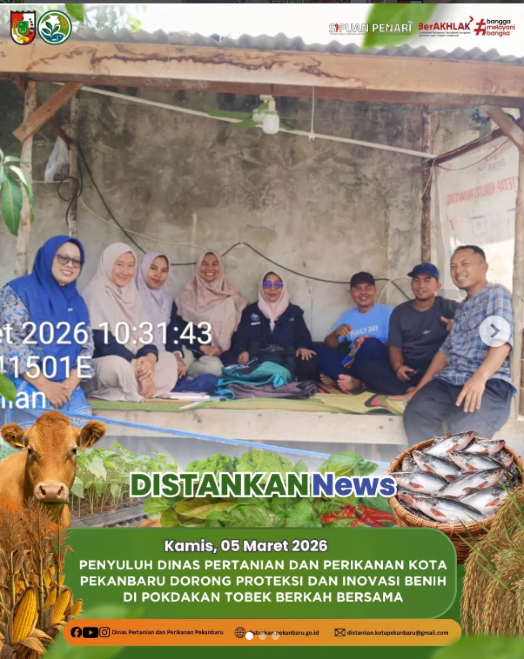 Penyuluh Dinas Pertanian dan Perikanan Kota Pekanbaru melakukan kunjungan lapangan ke Pokdakan Tobek Berkah Bersama di Kelurahan Sidomulyo Barat, Kecamatan Tuah Madani. Kegiatan ini bertujuan memperkuat keberlanjutan usaha budidaya sekaligus memberikan pemahaman pentingnya perlindungan kerja melalui BPJS Ketenagakerjaan bagi para pembudidaya.
