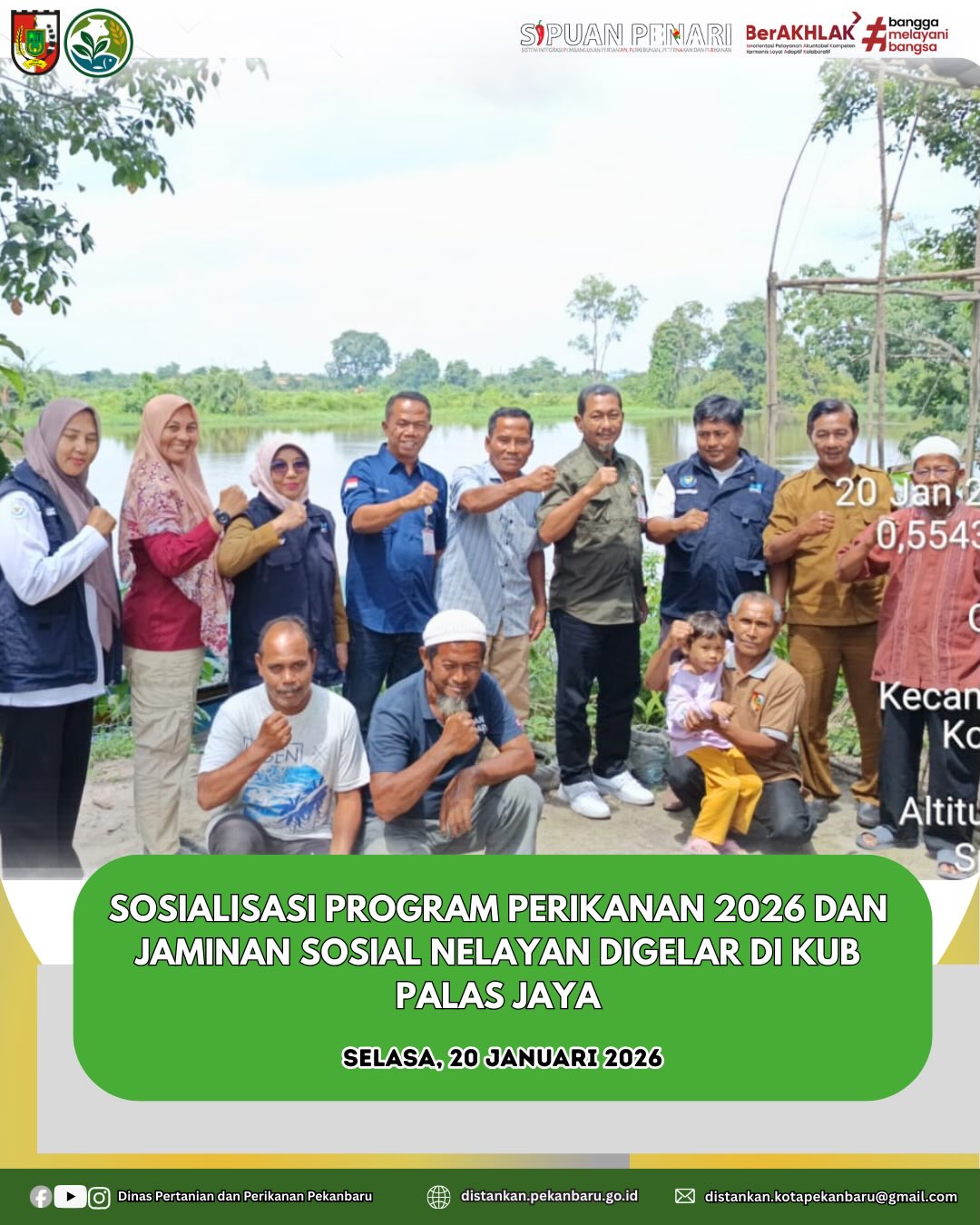 Sinergi pemerintah dan nelayan terus diperkuat melalui kunjungan kerja Dinas Pertanian dan Perikanan Kota Pekanbaru ke KUB Palas Jaya, Kelurahan Palas, Kecamatan Rumbai. Kegiatan ini menjadi momentum penyampaian arah kebijakan dan program strategis perikanan tahun 2026, sekaligus sosialisasi pentingnya jaminan sosial BPJS Ketenagakerjaan bagi nelayan.