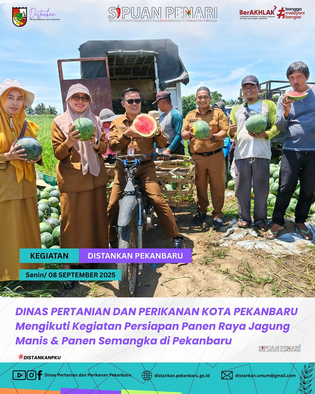 Hal ini menjadi bukti nyata bahwa komoditas pertanian lokal Pekanbaru memiliki daya saing dan kualitas yang tinggi. Bahkan, Kepala Dinas Pertanian dan Perikanan Kota Pekanbaru turut mencicipi langsung hasil panen semangka yang dikenal manis dan menyegarkan β sebagai bentuk apresiasi terhadap kerja keras para petani.