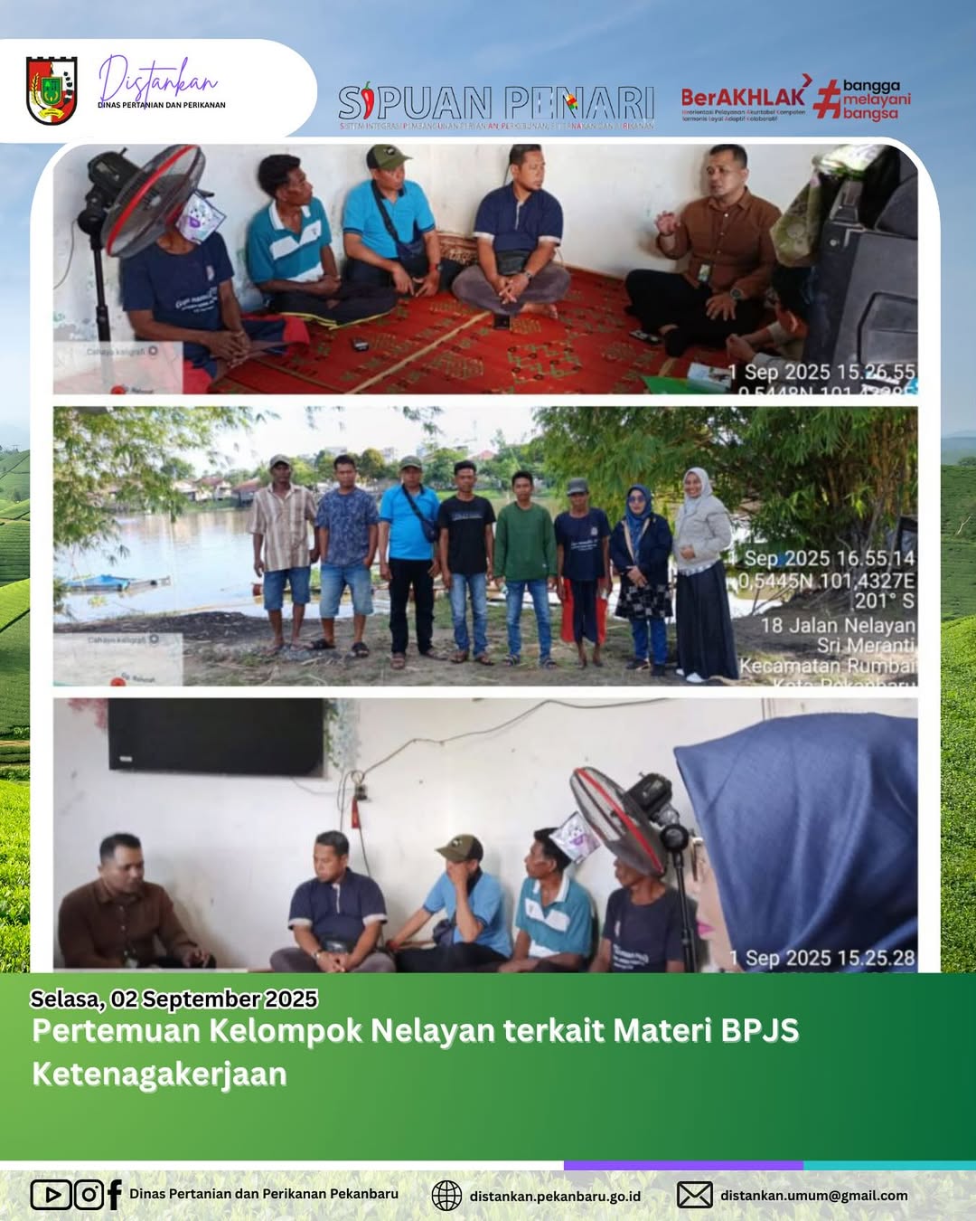 Dinas Pertanian dan Perikanan Kota Pekanbaru Bersama BPJS Ketenagakerjaan Kantor Unit Tampan Kota Pekanbaru melakukan sosialisasi program BPJS Ketenagakerjaan bagi pekerja bukan penerima upah di Kelompok Nelayan.
