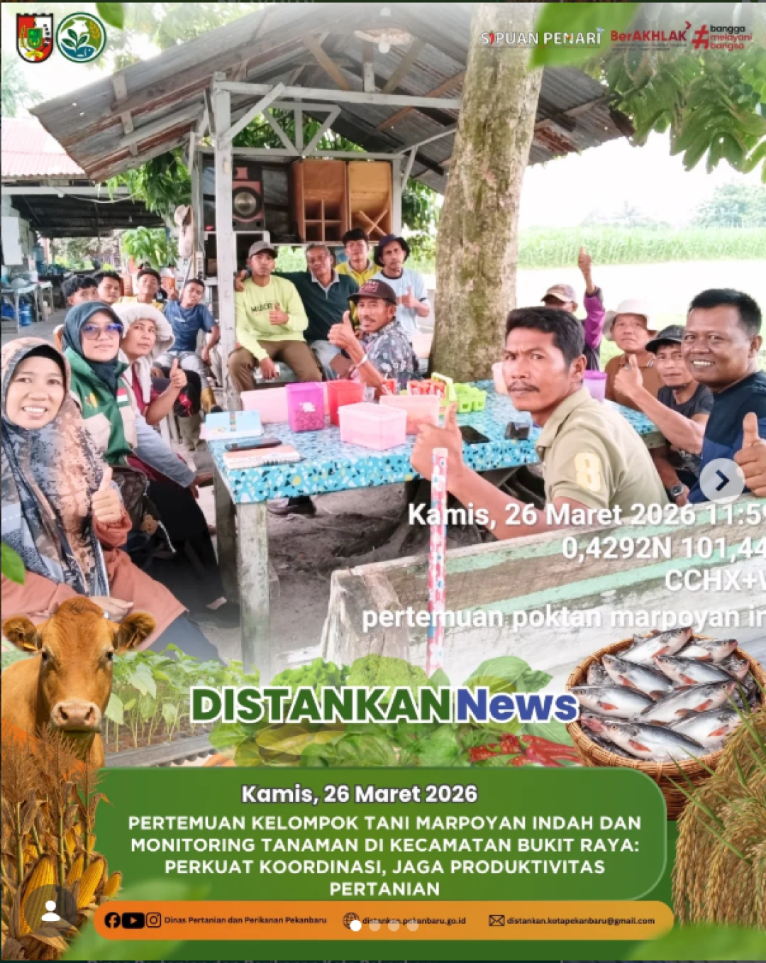 Kegiatan pertemuan Kelompok Tani Marpoyan Indah bersama monitoring lapangan di Kelurahan Air Dingin, Kecamatan Bukit Raya, menjadi langkah nyata dalam memastikan sektor pertanian tetap produktif dan berkelanjutan.