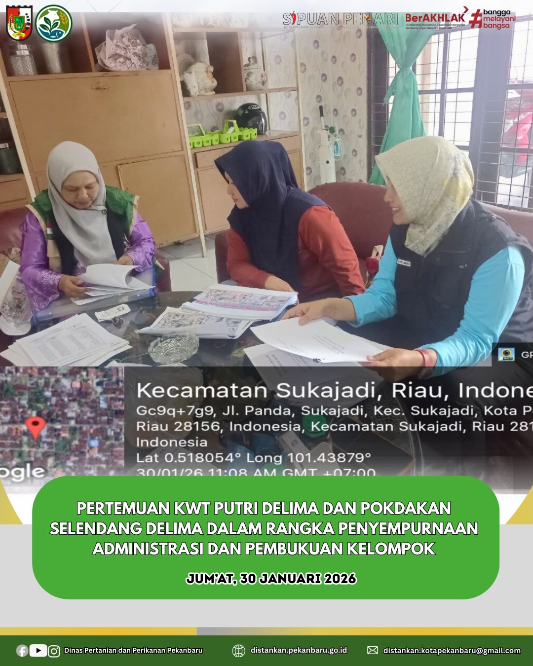 Penyuluh dari Dinas Pertanian dan Perikanan Kota Pekanbaru melaksanakan pendampingan kepada KWT Putri Delima dan Pokdakan Selendang Delima di Kelurahan Sukajadi, Kecamatan Sukajadi.