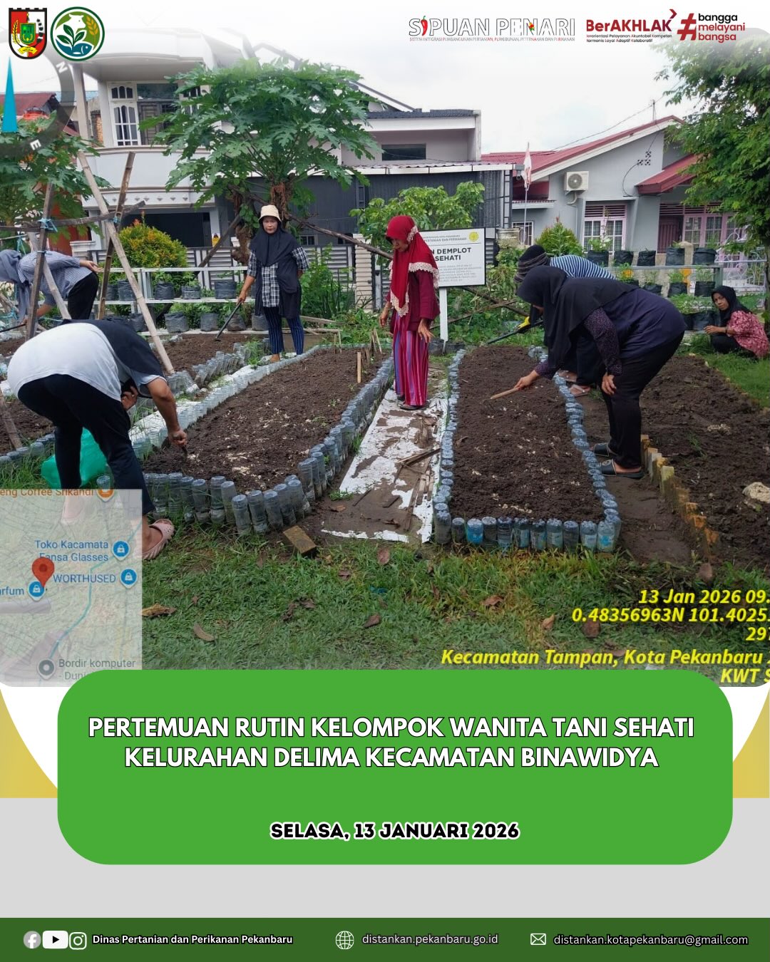 Kelompok Wanita Tani Sehati Kelurahan Delima, Kecamatan Binawidya kembali melaksanakan pertemuan rutin yang diisi dengan kegiatan produktif dan penuh kebersamaan.