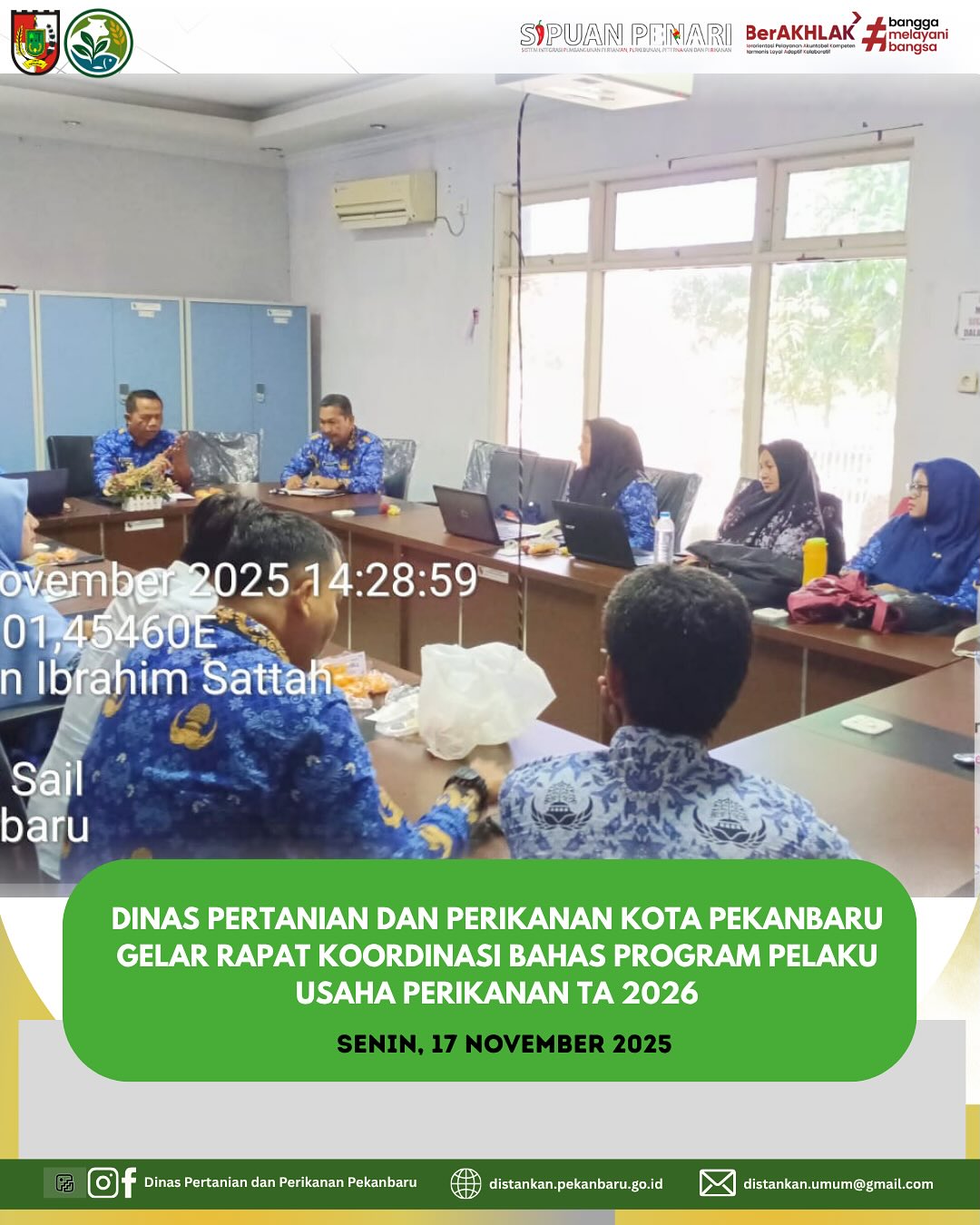 Senin, 17 November 2025, Bidang Perikanan Dinas Pertanian dan Perikanan Kota Pekanbaru menggelar rapat koordinasi bersama seluruh Penyuluh Perikanan sekota Pekanbaru.