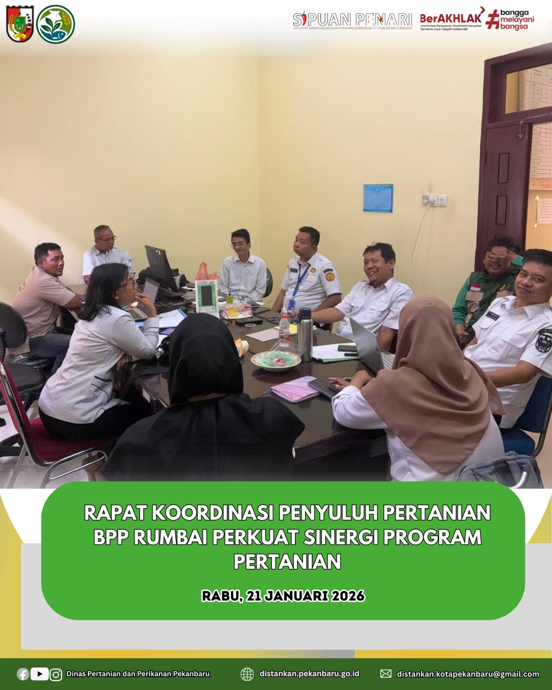 Dalam rangka memperkuat kinerja dan meningkatkan pelayanan kepada petani, BPP Rumbai melaksanakan rapat koordinasi penyuluh pertanian dengan pembahasan poin-poin strategis, antara lain: