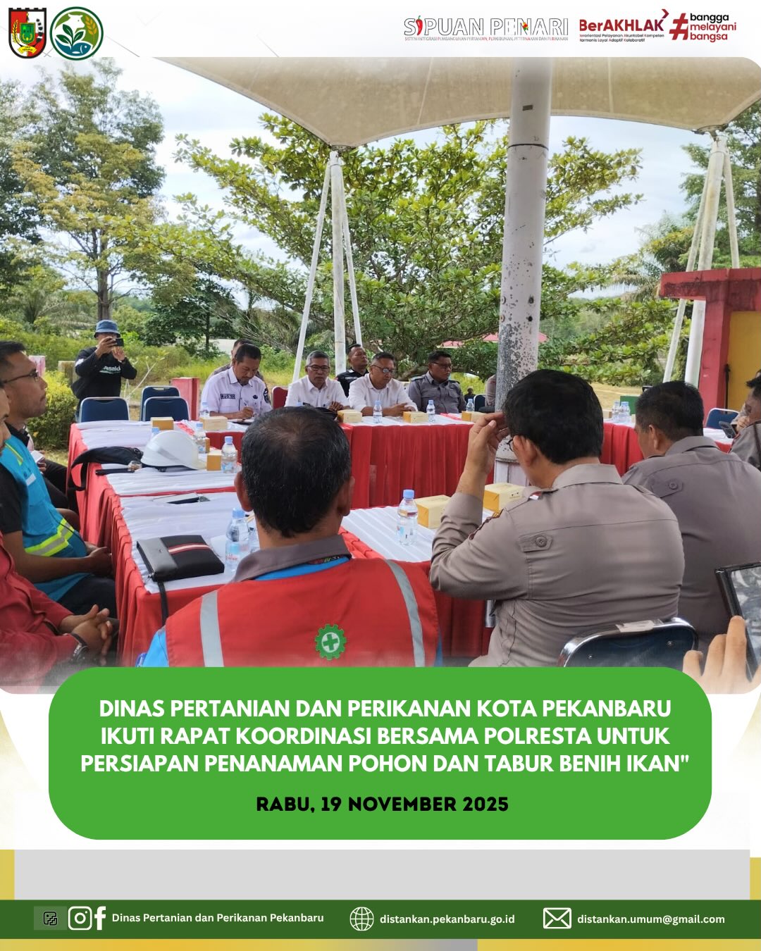 Hari ini, Distankan Pekanbaru mengikuti Rapat Koordinasi bersama Polresta Kota Pekanbaru dalam rangka persiapan kegiatan Penanaman Pohon dan Penebaran Benih Ikan untuk memperingati Hari Pohon Nasional, yang akan dilaksanakan pada Jumat, 21 November 2025 di Taman Wisata Danau Bandar Khayangan. π±π