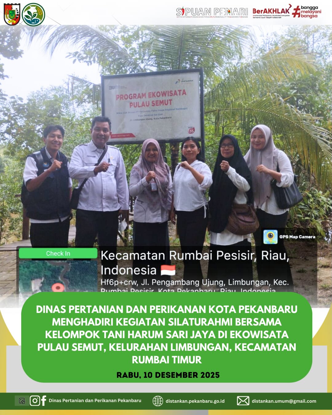 Dinas Pertanian dan Perikanan Kota Pekanbaru menghadiri kegiatan silaturahmi bersama Kelompok Tani Harum Sari Jaya yang berlangsung di Ekowisata Pulau Semut, Kelurahan Limbungan, Kecamatan Rumbai Timur.