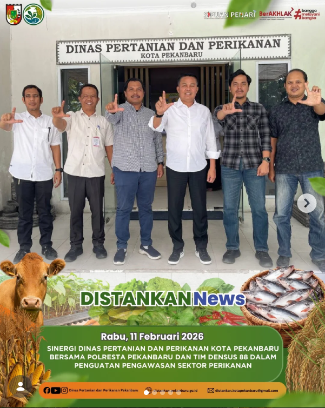 Dinas Pertanian dan Perikanan Kota Pekanbaru terus memperkuat koordinasi bersama Polresta Pekanbaru serta Tim Densus 88 bidang perikanan dalam menjaga keamanan, ketertiban, dan pengawasan sektor perikanan.