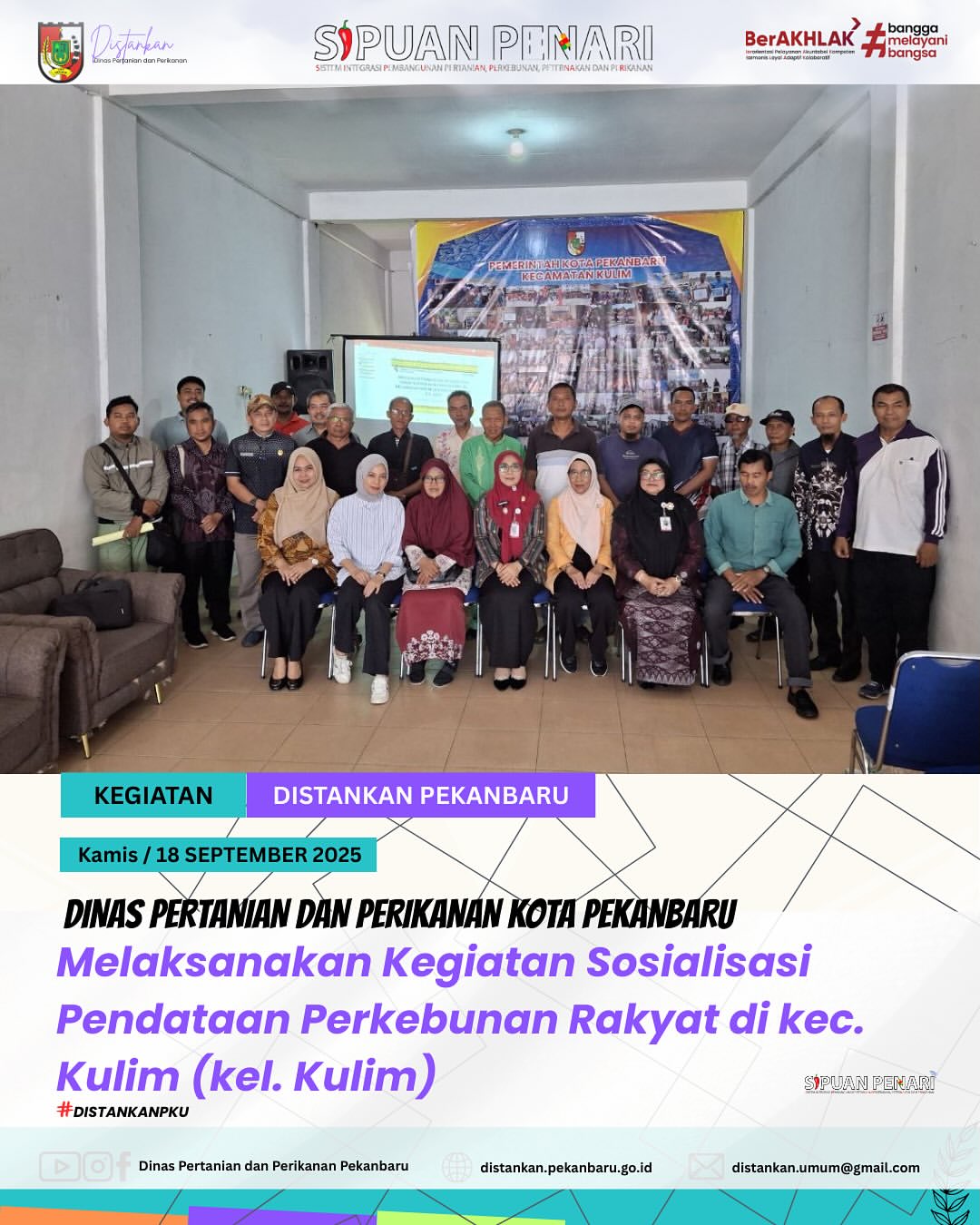 Kegiatan sosialisasi pendataan perkebunan rakyat telah dilaksanakan di Kelurahan Kulim, Kecamatan Kulim. Kegiatan ini turut dihadiri oleh Camat Kulim Fajri Adha, S.STP, M.Si dan Lurah Kulim Agustina, SKM.