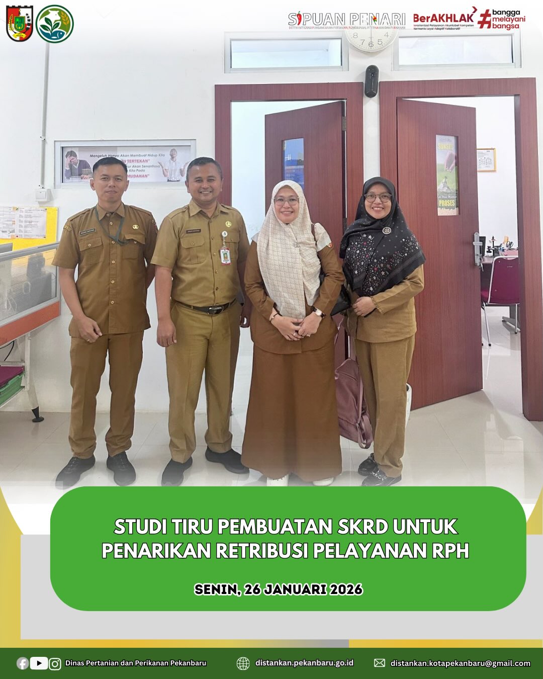 Dinas Pertanian melakukan studi tiru terkait pembuatan Surat Ketetapan Retribusi Daerah (SKRD) dengan mempelajari aplikasi SIREKAN (Sistem Retribusi Kantin) milik Dinas Pendidikan.