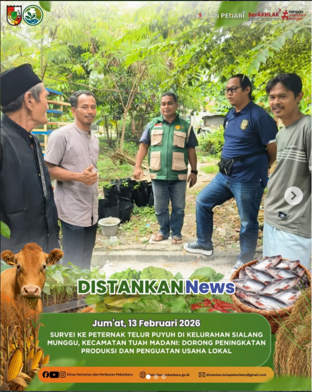 Kegiatan survei bersama Bapak Leman, peternak telur puyuh di Kelurahan Sialang Munggu, Kecamatan Tuah Madani.