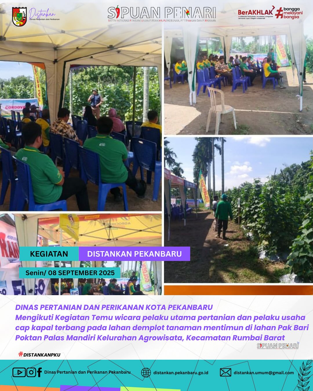 Kegiatan temu wicara bersama para pelaku utama pertanian dan pelaku usaha Cap Kapal Terbang sukses dilaksanakan di lahan demplot tanaman mentimun milik Bapak Bari, anggota Poktan Palas Mandiri, Kelurahan Agrowisata, Kecamatan Rumbai Barat.