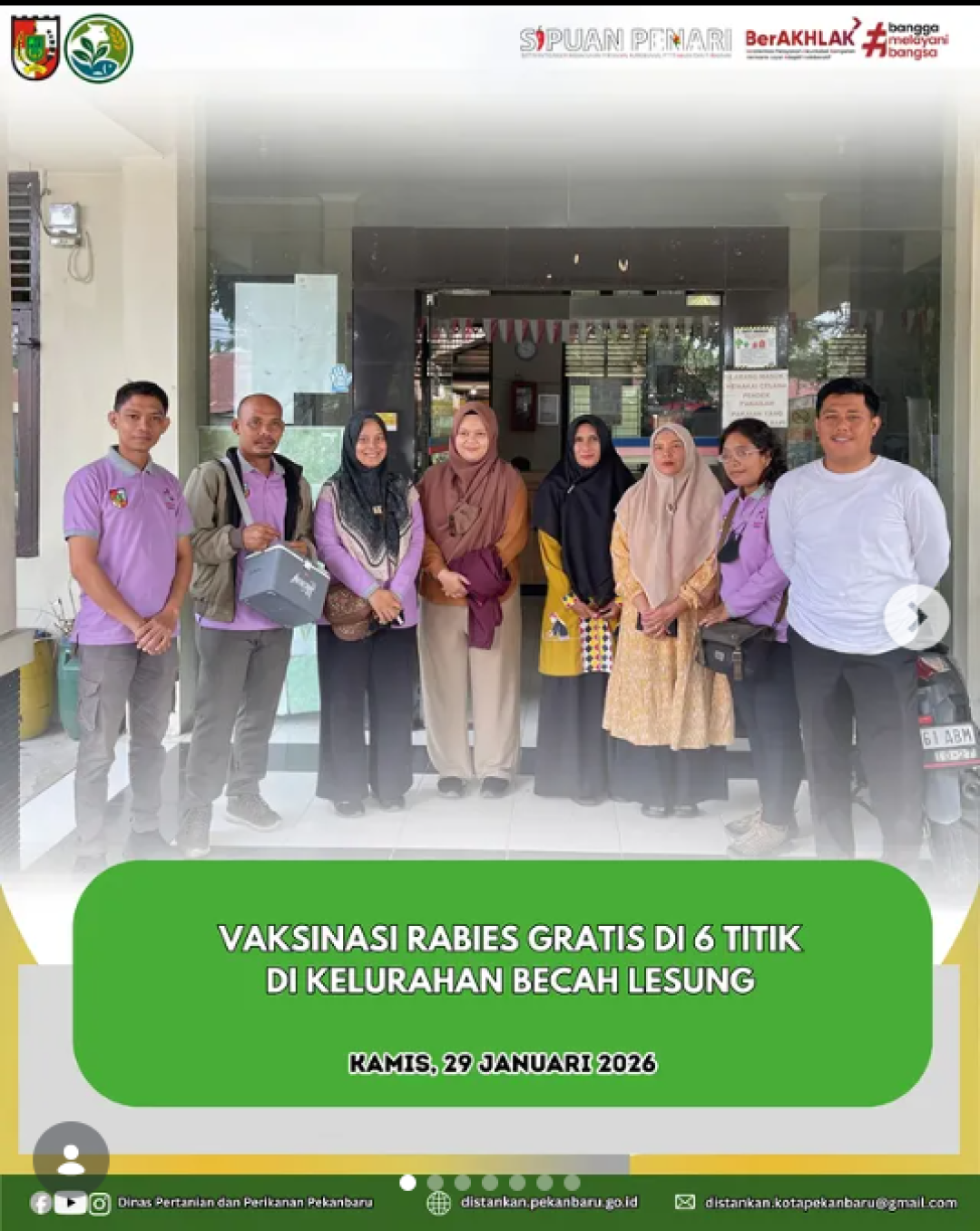Kegiatan ini dilaksanakan oleh tim dokter hewan dan petugas lapangan Dinas Pertanian dan Perikanan Kota Pekanbaru sebagai bentuk komitmen pemerintah daerah dalam memberikan pelayanan kesehatan hewan yang prima dan berkelanjutan.