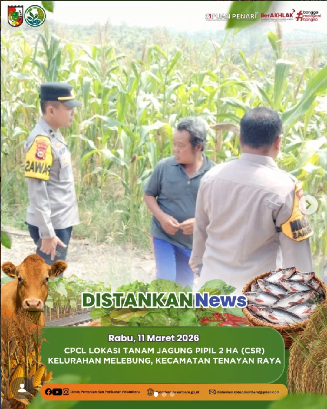 Upaya mendukung peningkatan produksi pertanian terus dilakukan melalui identifikasi Calon Petani dan Calon Lokasi (CPCL) untuk pengembangan tanaman jagung pipil. Kegiatan ini dilaksanakan di Kelurahan Melebung, Kecamatan Tenayan Raya dengan luas lahan sekitar 2 hektare yang direncanakan sebagai lokasi tanam jagung pipil melalui program CSR.